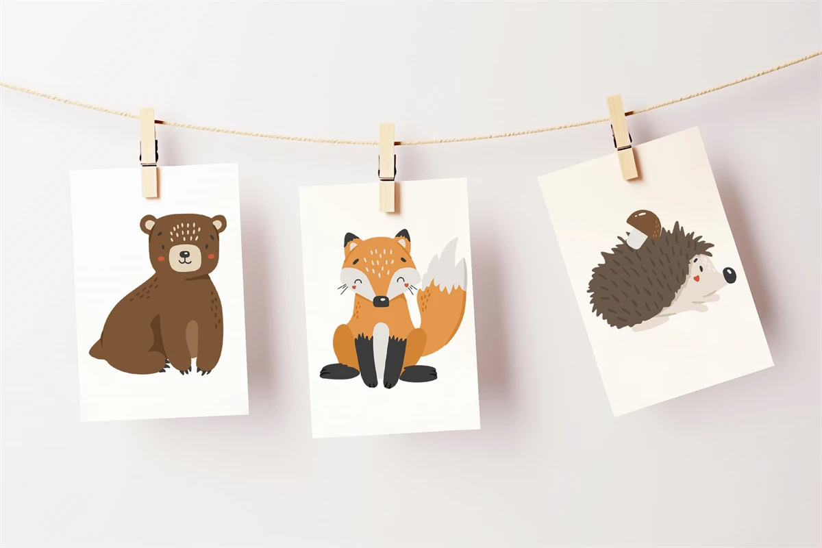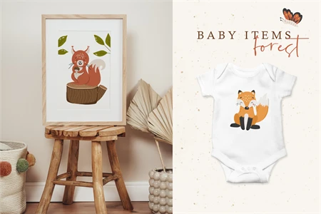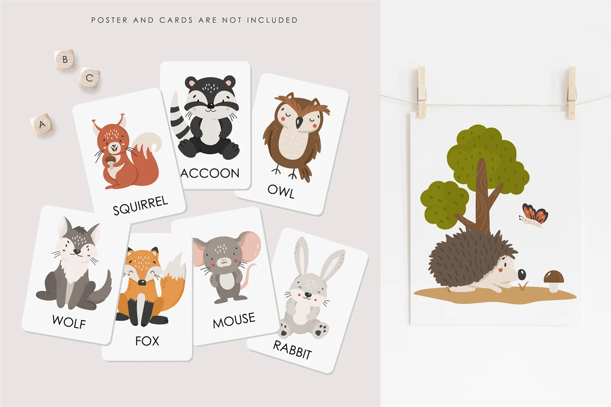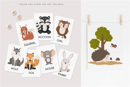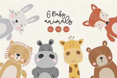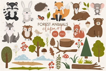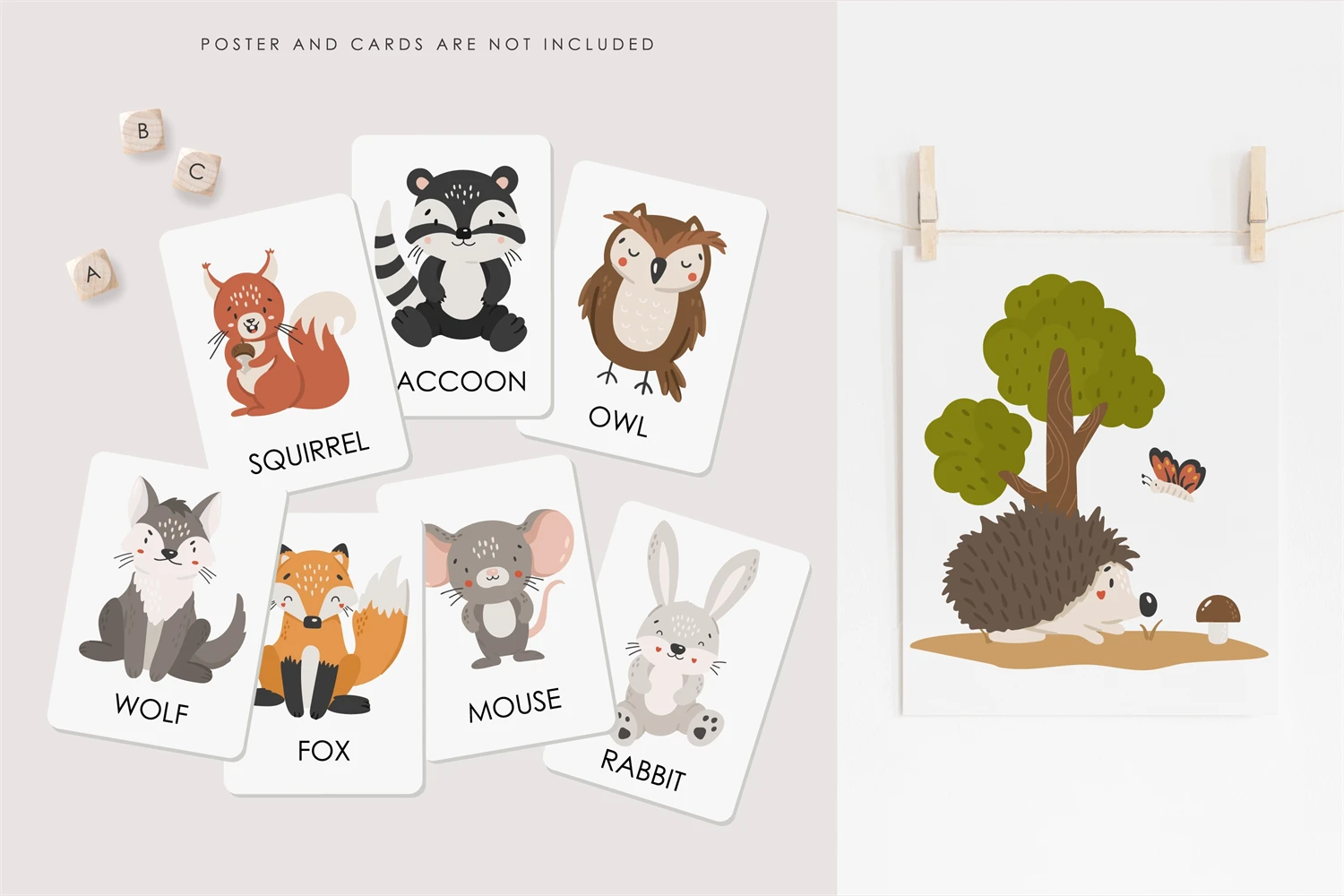 Baby animals clipart, Boho abstract animals, Digital nursery elements, Forest animals PNG