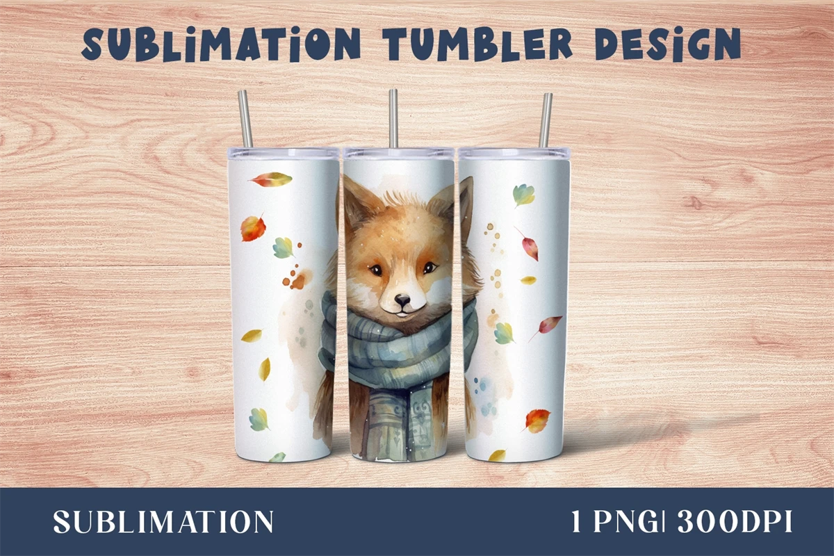 Watercolor Cute Fox Tumbler Wrap 20 oz