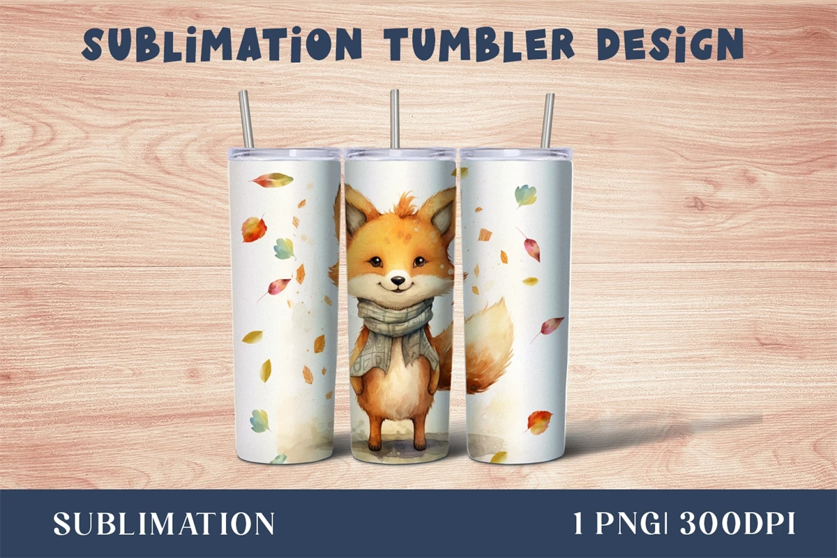 Watercolor Cute Fox Tumbler Wrap 20 oz
