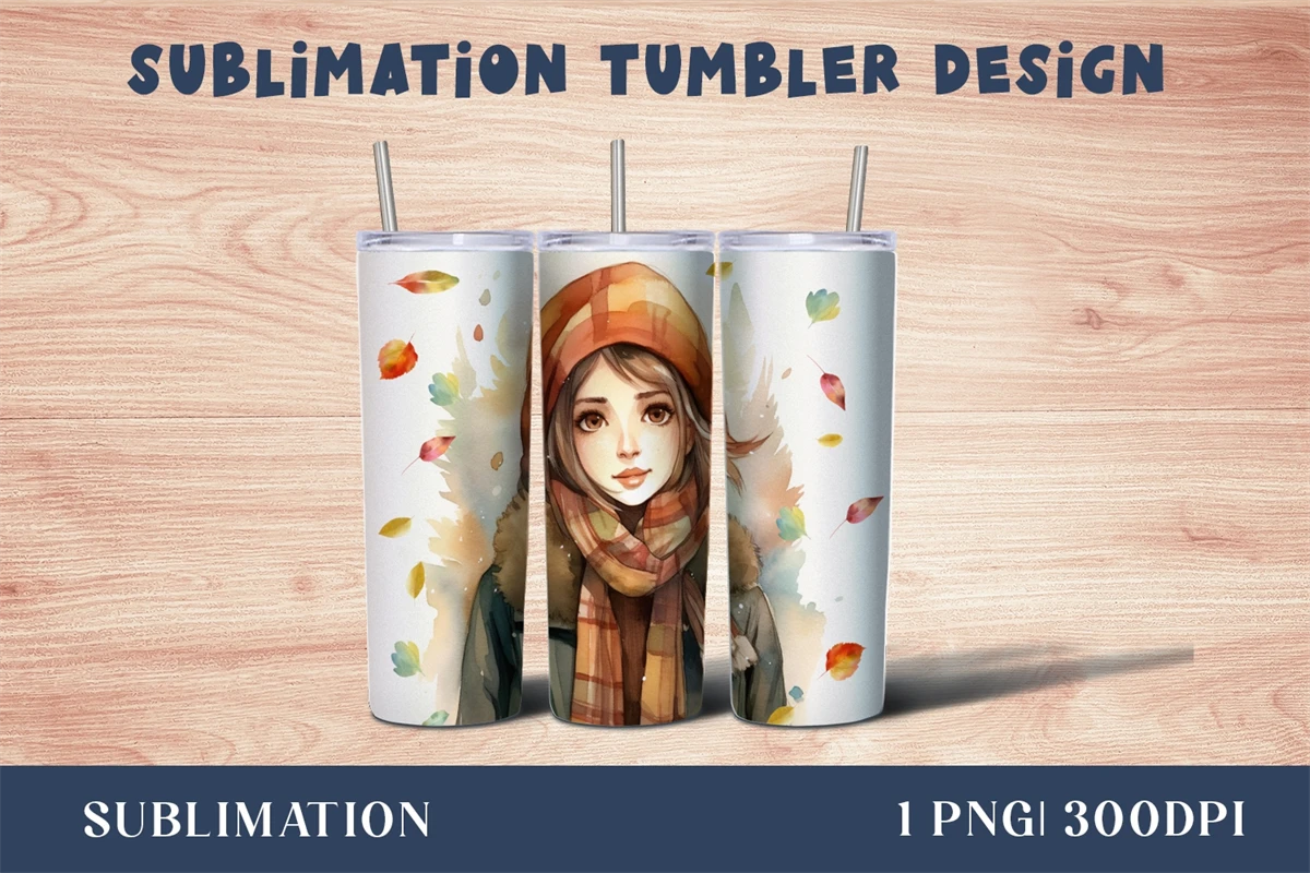 Watercolor Cute girl Tumbler Wrap 20 oz