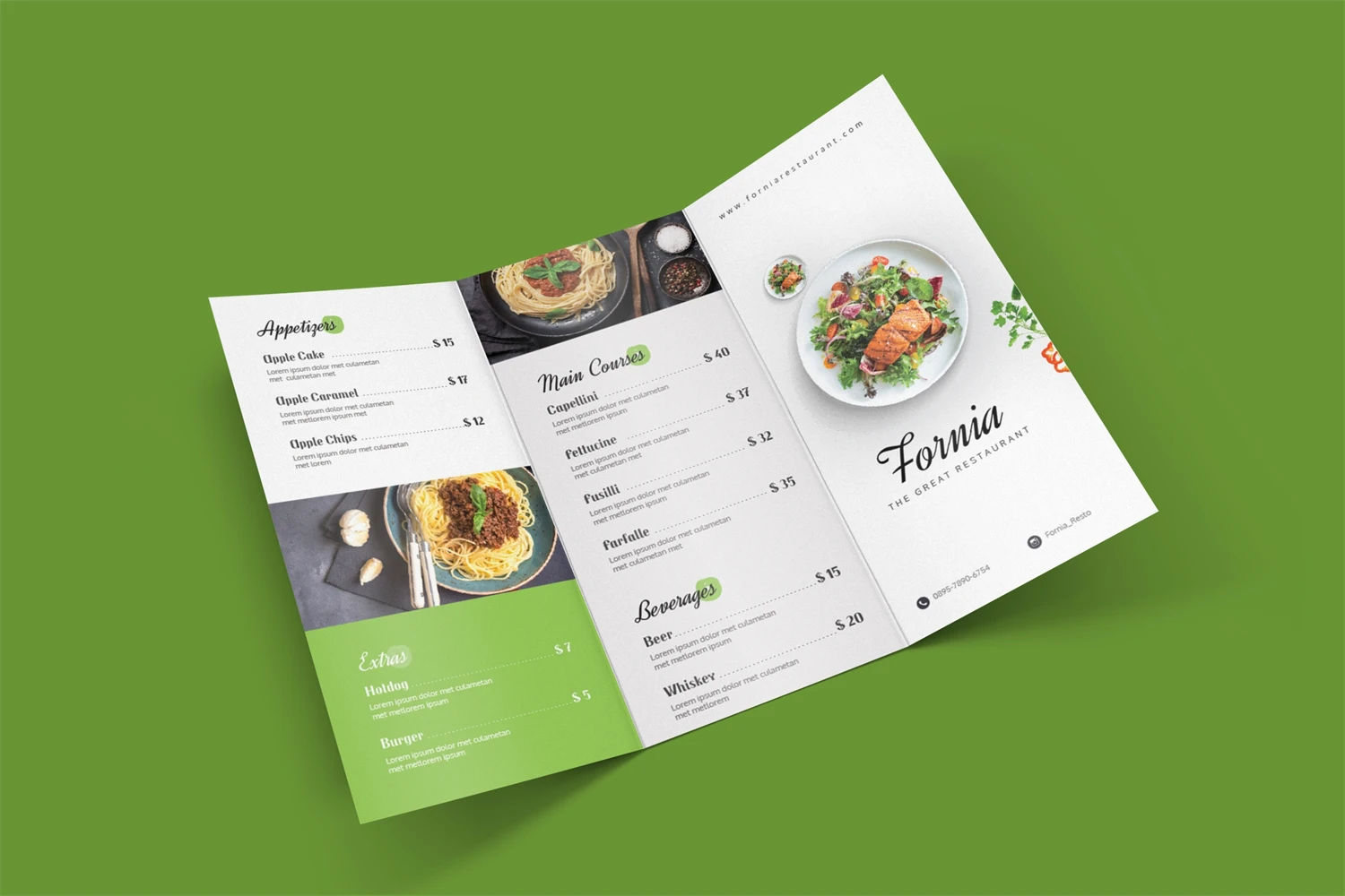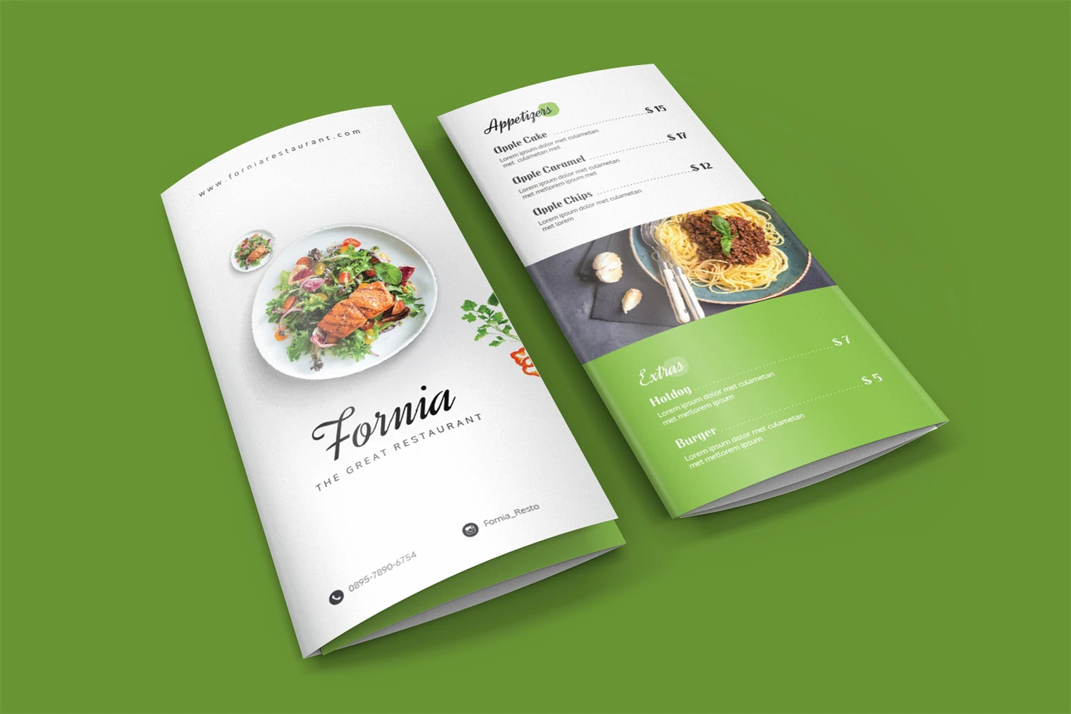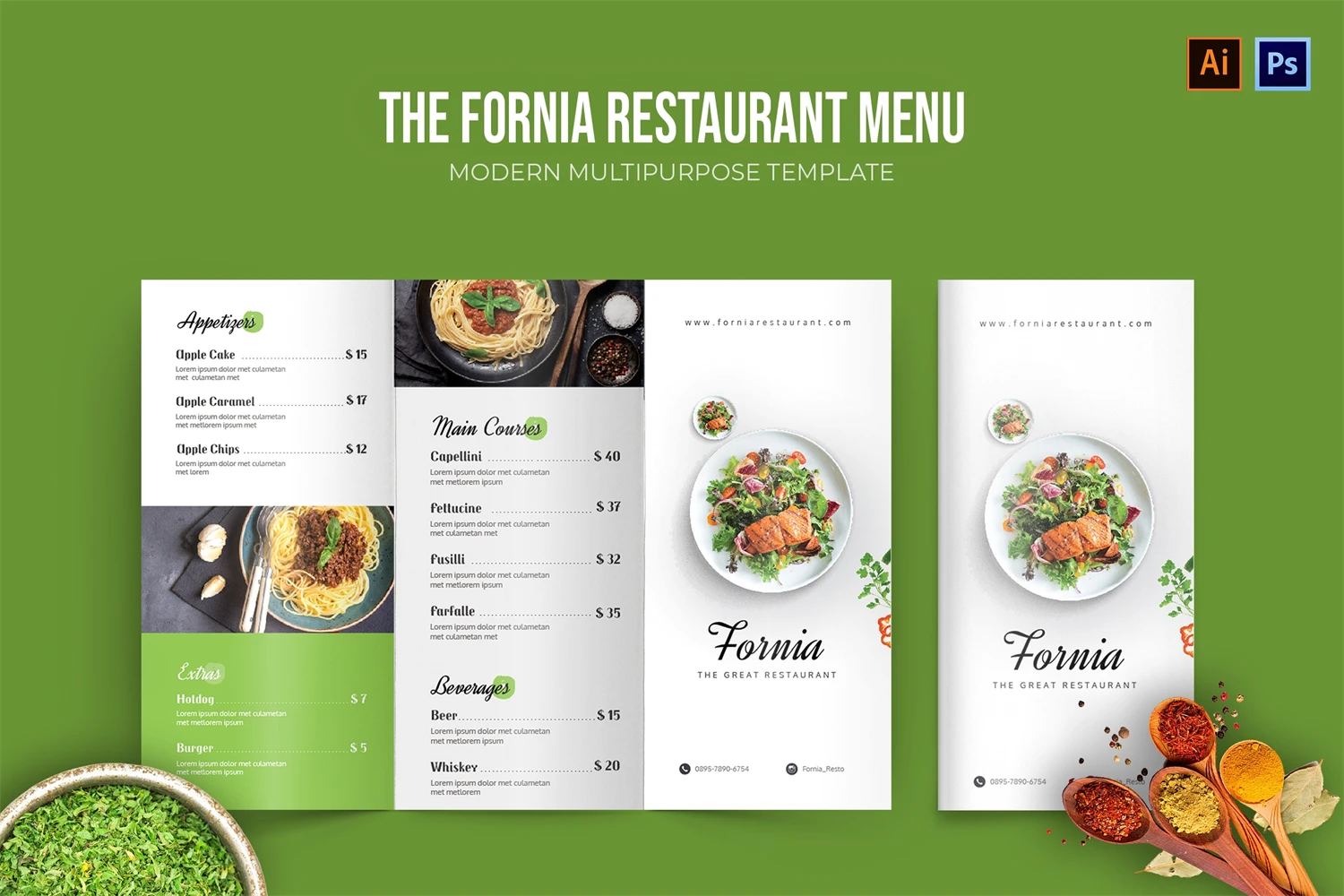 Fornia - Restaurant Menu. This template is great for your business and will make your customers interested, elegant, and easily editable according to your needs, this restaurant menu is perfect for, promos, cafes, hotels, resort shops online. etc. I hope you enjoy this restaurant menu
