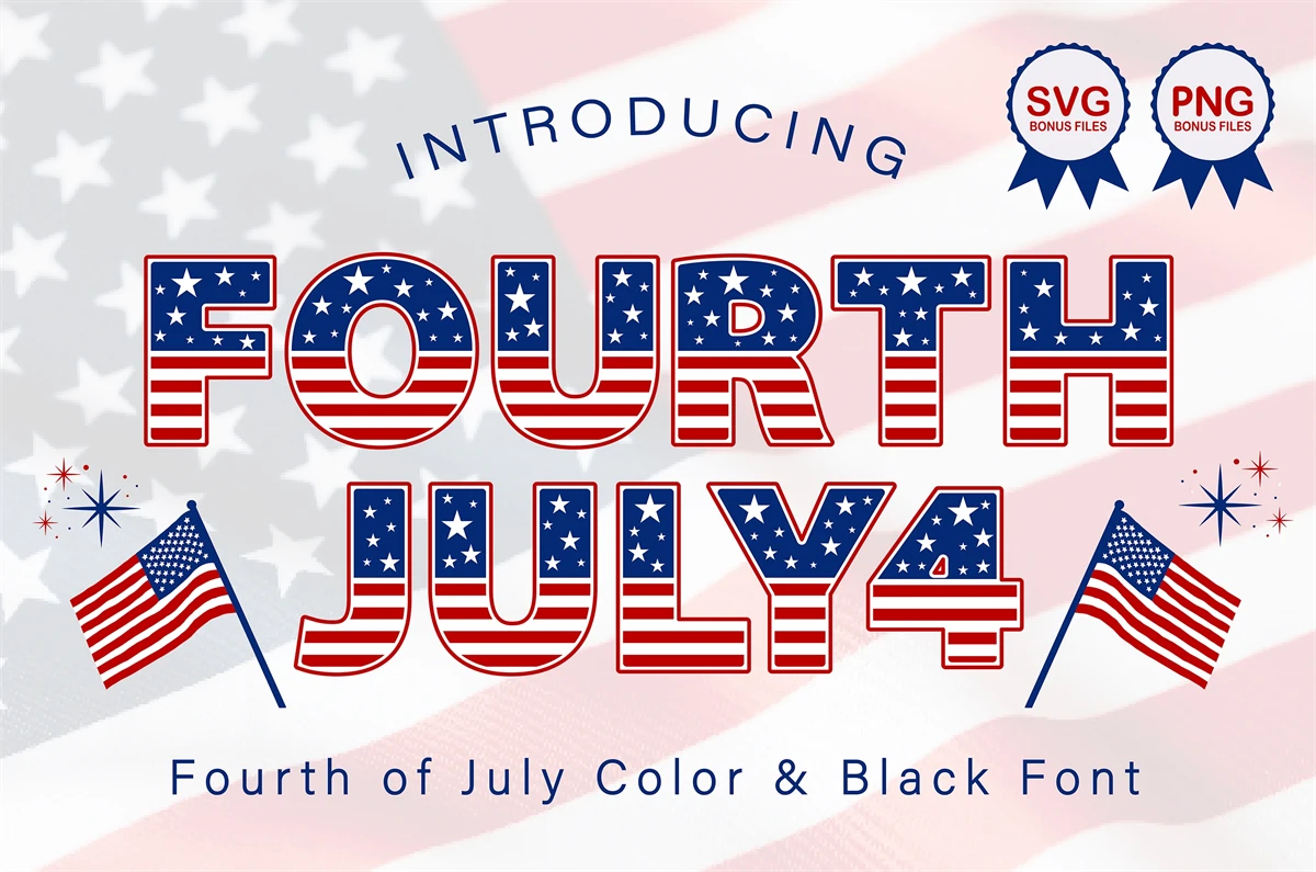 Introducing Fourth July, a sensational font that artistically embodies the spirit of the American flag. Designed to infuse any project with a patriotic pride, Fourth July is an ideal choice for grand 4th of July celebrations, showcasing American nationality, and for creating inspiring patriotic memorials. Express your love for America in every keystroke with Fourth July.