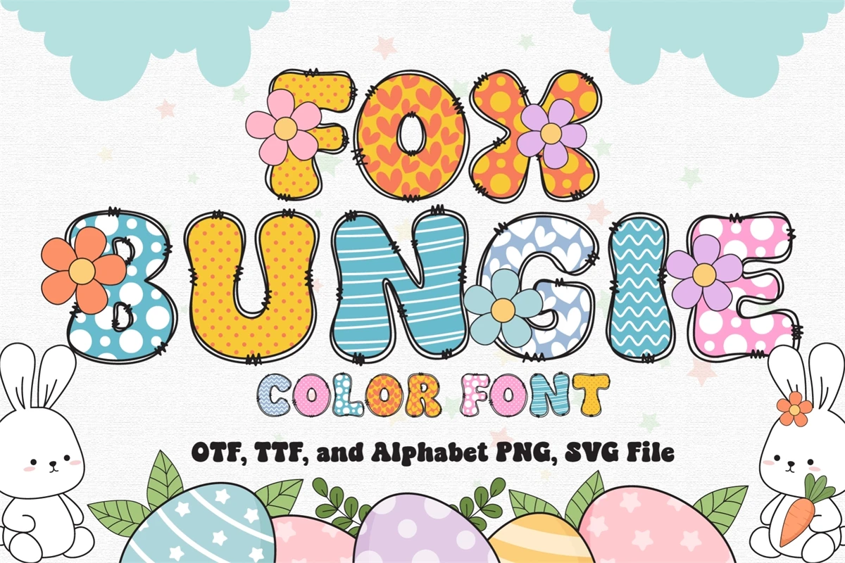 Fox Bungie is a cute and fun Color font. You can use it for various projects, such as blog posts, logos, branding, ads, invitations, greeting cards, planners, photo albums, decorations, and much more. Add it to any of your designs, and enjoy the results!