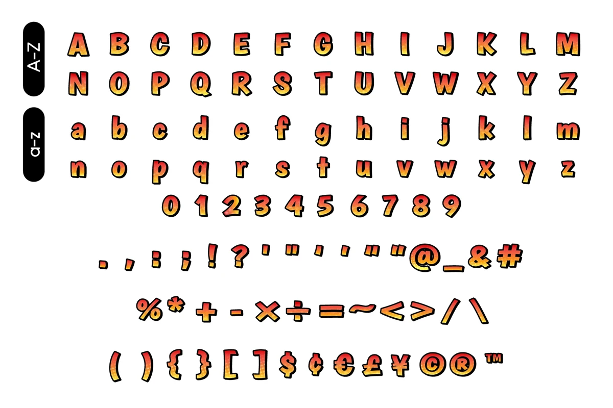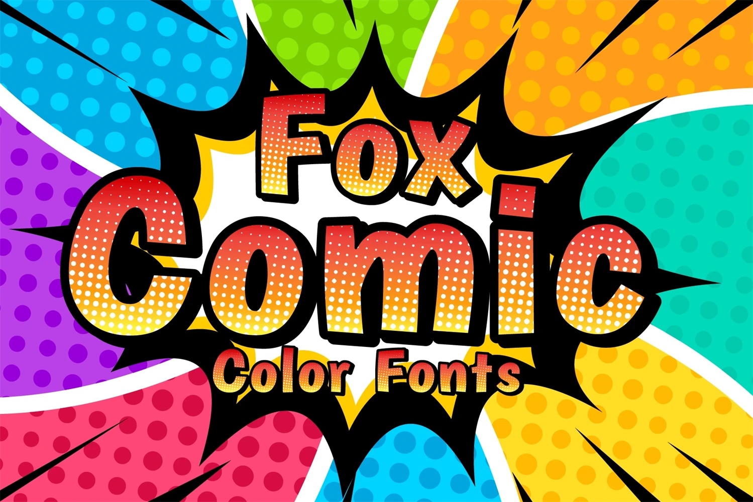Fox Comic is a cool and fun Color font. It is the perfect font for titles or words needing a more dramatic emphasis. Whatever the topic, this font will be a wonderful asset to your font library, as it has the potential to enhance any creation.