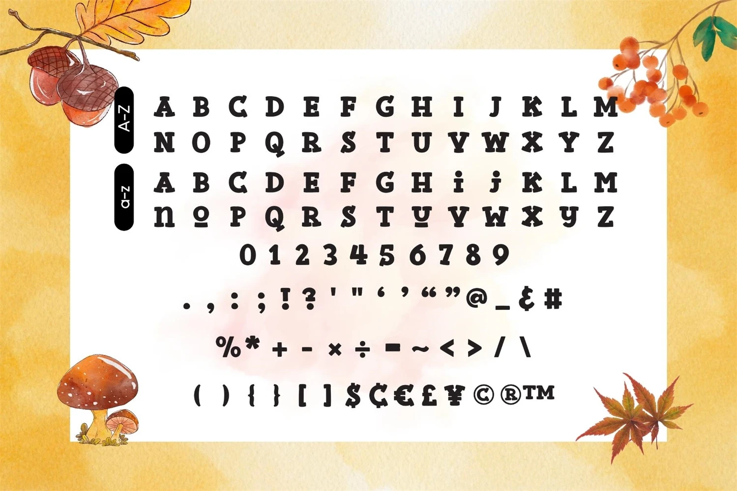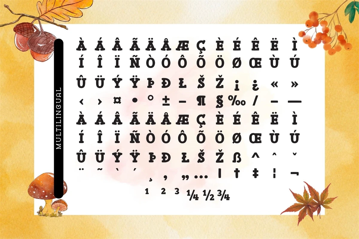 Fox Pumpkin is a bold and playful slab serif font that adds a captivating and energetic touch to your designs. Its main feature is its vibrant and expressive design, allowing you to create attention-grabbing headlines, t-shirt typography, banners, product labels, and more with its versatility and eye-catching presence.
