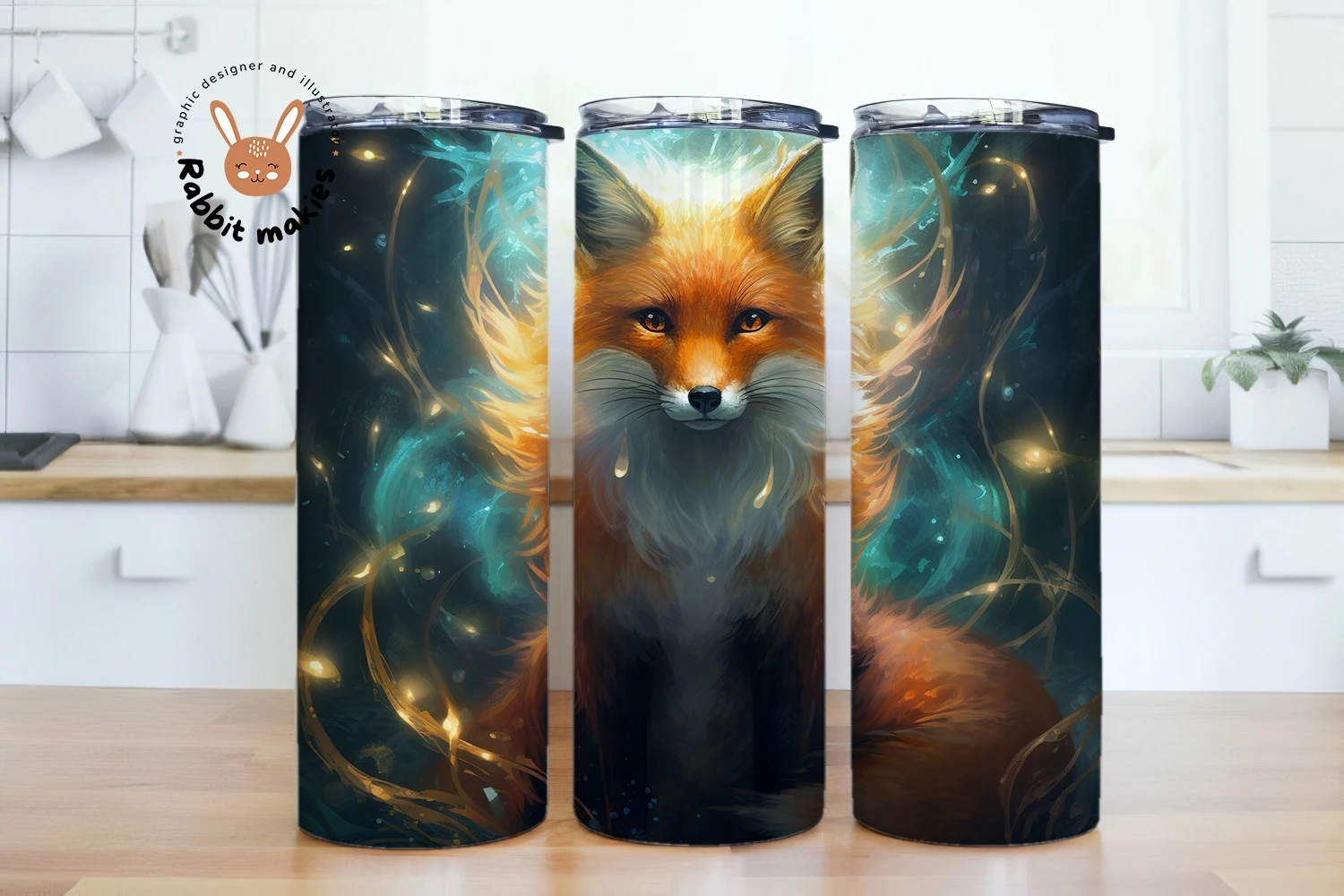 Fox & Starry Night Sky Design, Fox 20 oz Skinny Tumbler Png