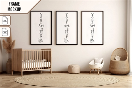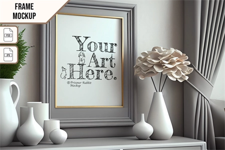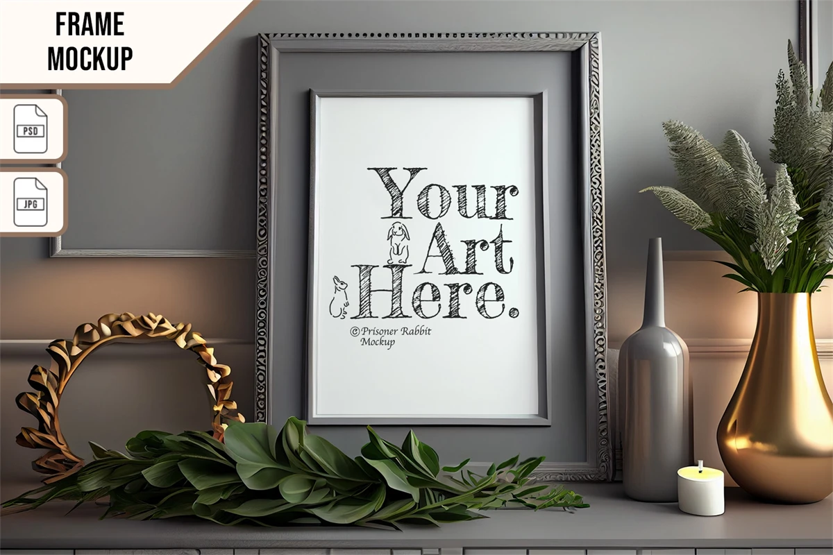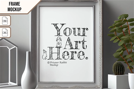 Frame mockup with Photoshop (PSD) template for drawing design, coloring page, art and graphic designs
