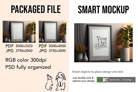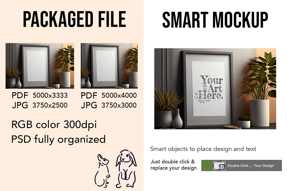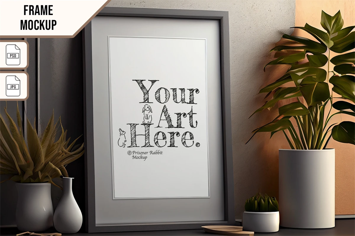 Frame mockup with Photoshop (PSD) template for drawing design, coloring page, art and graphic designs