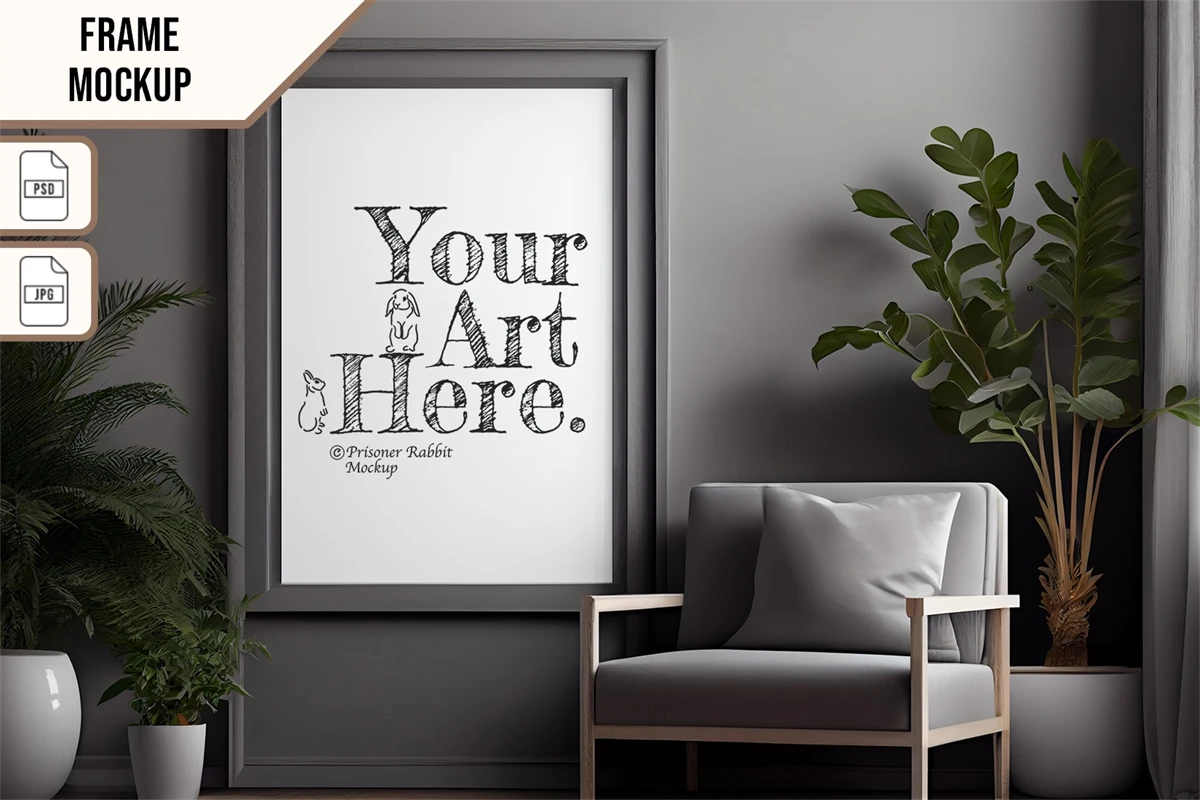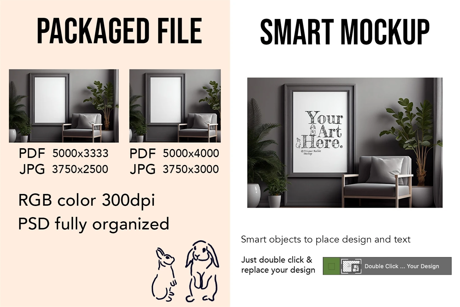 Frame mockup with Photoshop (PSD) template for drawing design, coloring page, art and graphic designs