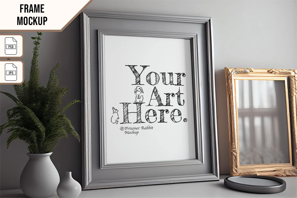 This mock-up features vertical frame displayed for home decoration.