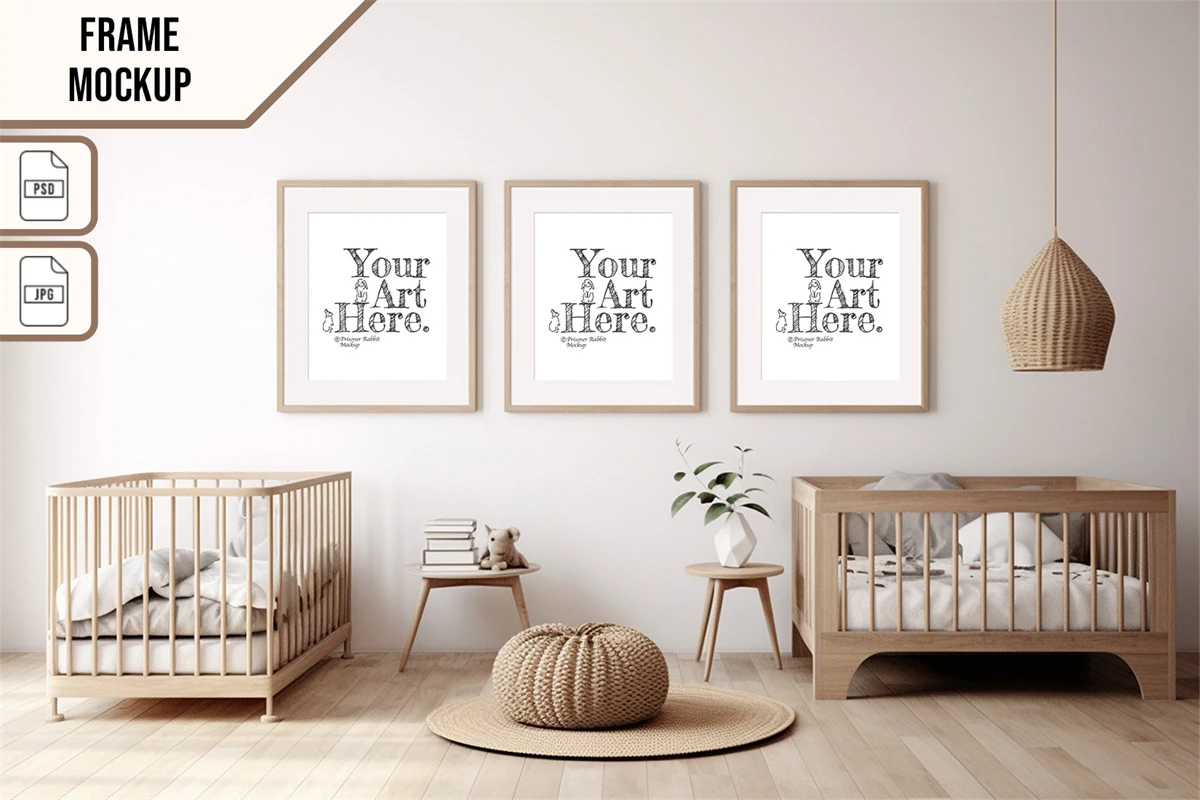 Frame mockup with Photoshop (PSD) template for drawing design, coloring page, art and graphic designs