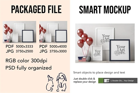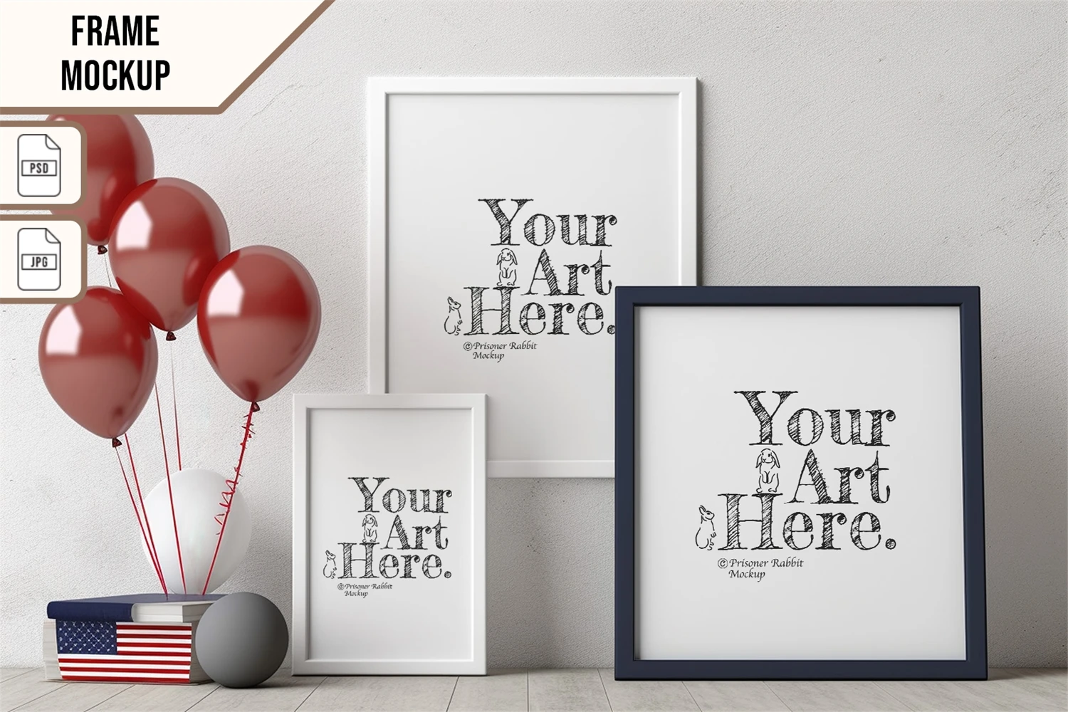 Frame mockup with Photoshop (PSD) template for drawing design, coloring page, art and graphic designs