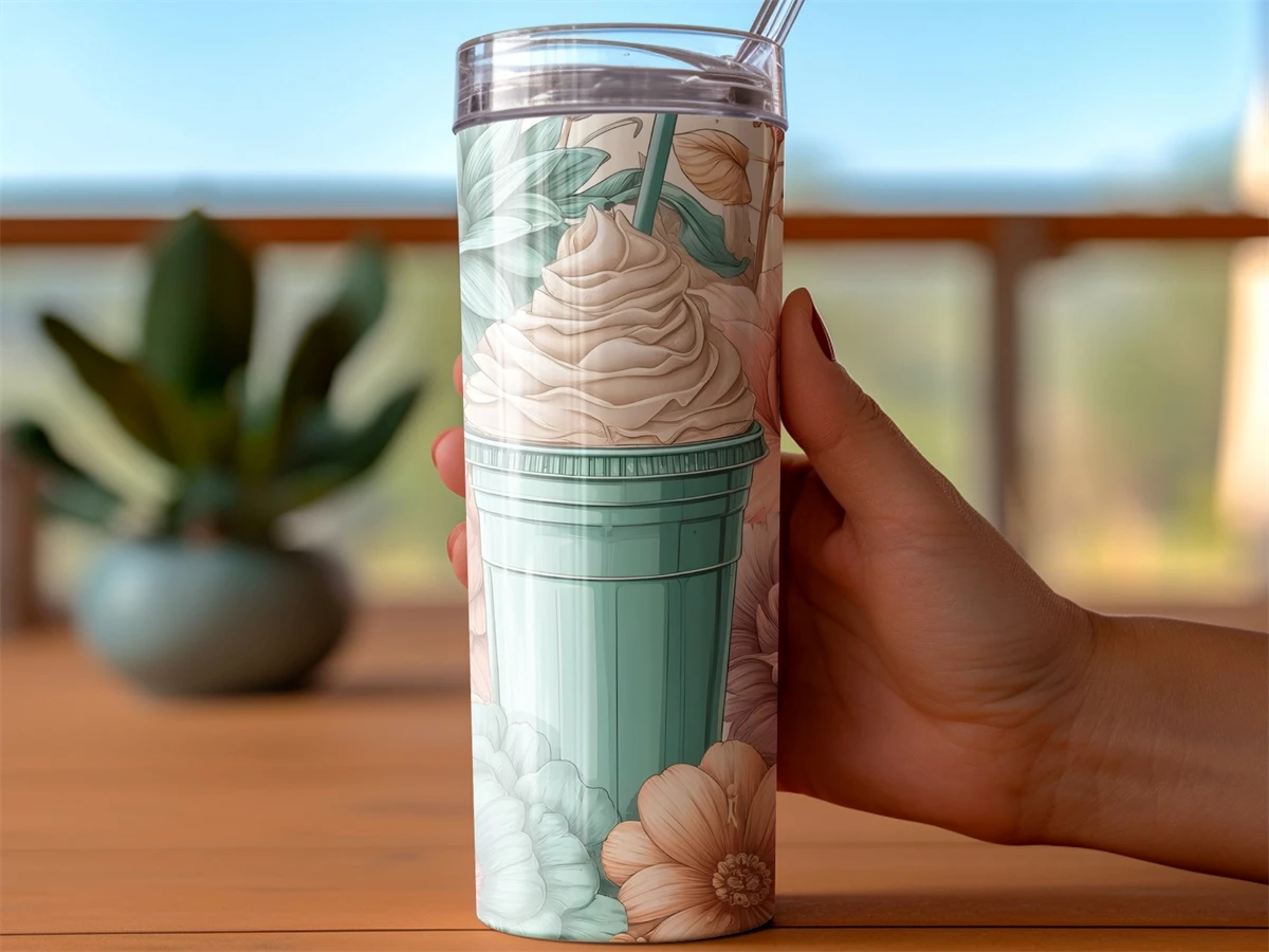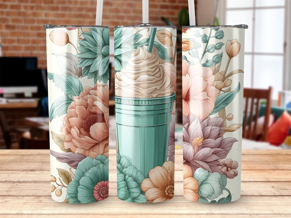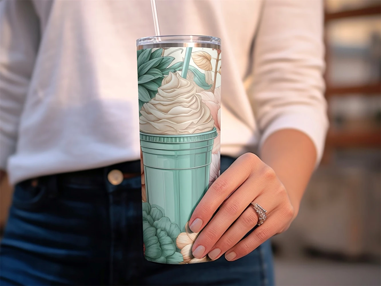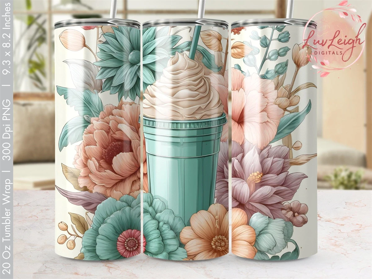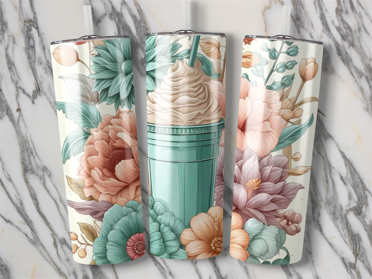 Frappe & Flowers Tumbler wrap Sublimation PNG