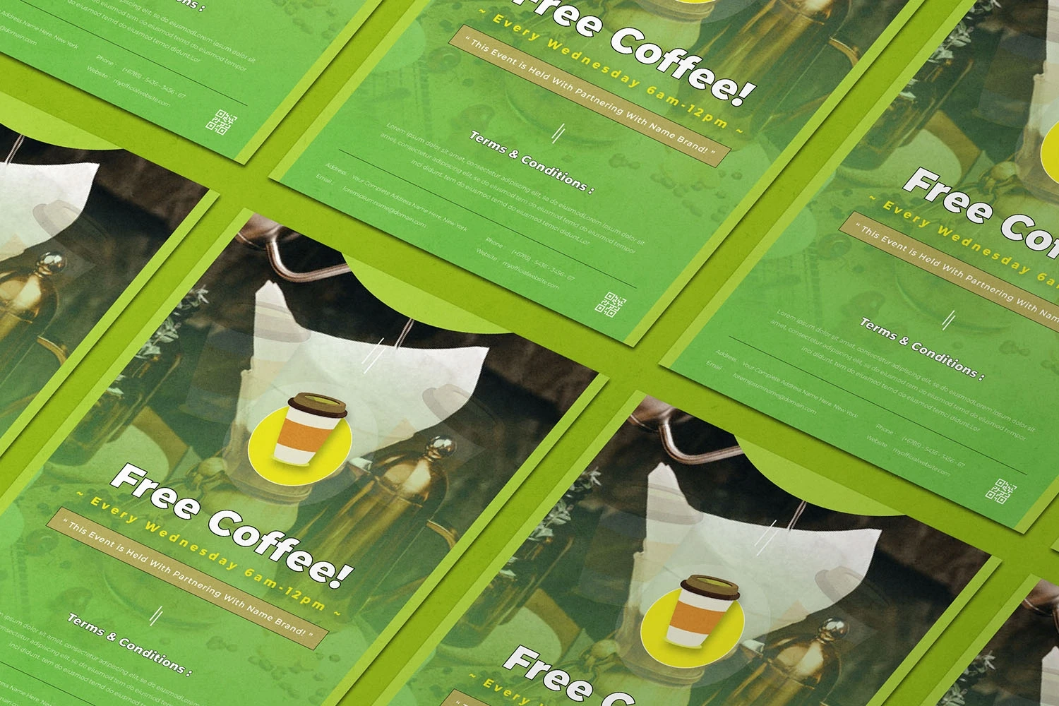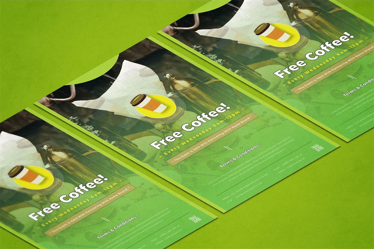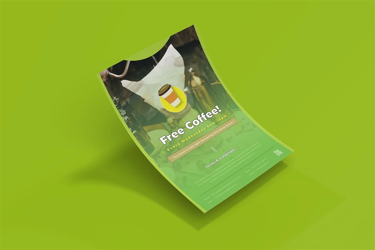 Free Coffee - Flyer. This Flyer template is designed for your company's business needs. very clean and elegant, and also easily edited and adjusted to your liking