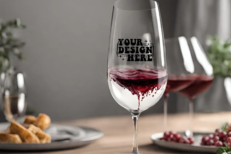 A wine glass mockup is a realistic digital or physical representation of a blank t-shirt design. It serves as a template for showcasing custom designs, logos, or artwork on a wine glass , helping designers and businesses visualize how their ideas will look on the final product before production. Mockups can vary in complexity, from simple flat images to 3D models worn by virtual models or placed in real-life settings, offering a versatile tool for design and marketing purposes.