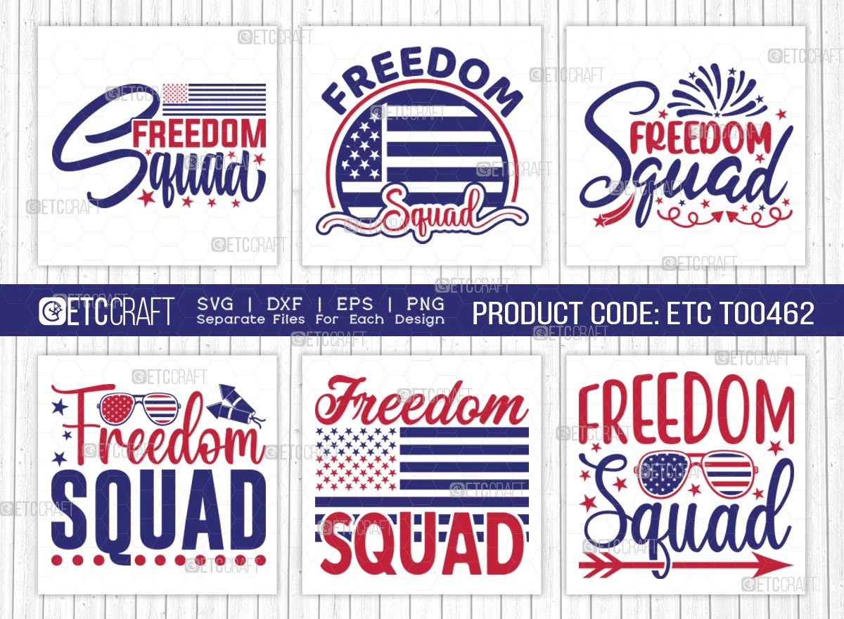 Freedom Squad SVG Bundle, the perfect collection to infuse your designs with a patriotic spirit and celebrate the essence of freedom. With a wide array of impressive designs and versatile features, this bundle is a must-have for anyone looking to create impactful and inspiring artwork.