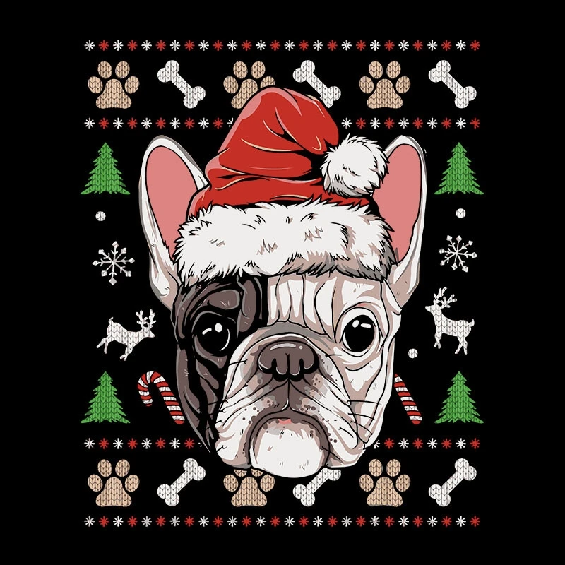 French Bulldog Ugly Christmas Svg, Dog Santa Hat