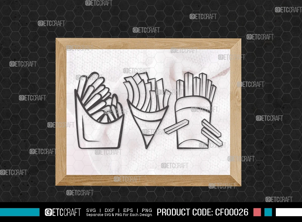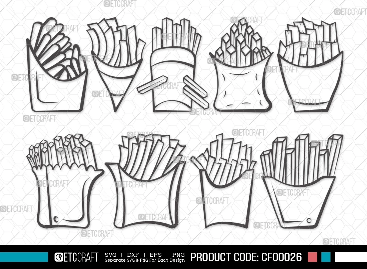 Craving a creative snack? Introducing our enticing French Fries Outline Potato Snack Fast Food SVG Cut File Bundle – the perfect recipe to spice up your crafting with a dash of fast-food fun!