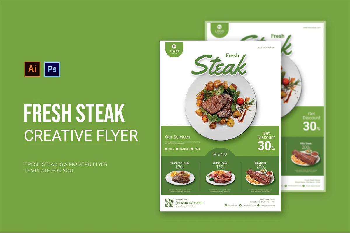 Fresh Steak - Flyer. This Flyer template is designed for your company's business needs. very clean and elegant, and also easily edited and adjusted to your liking