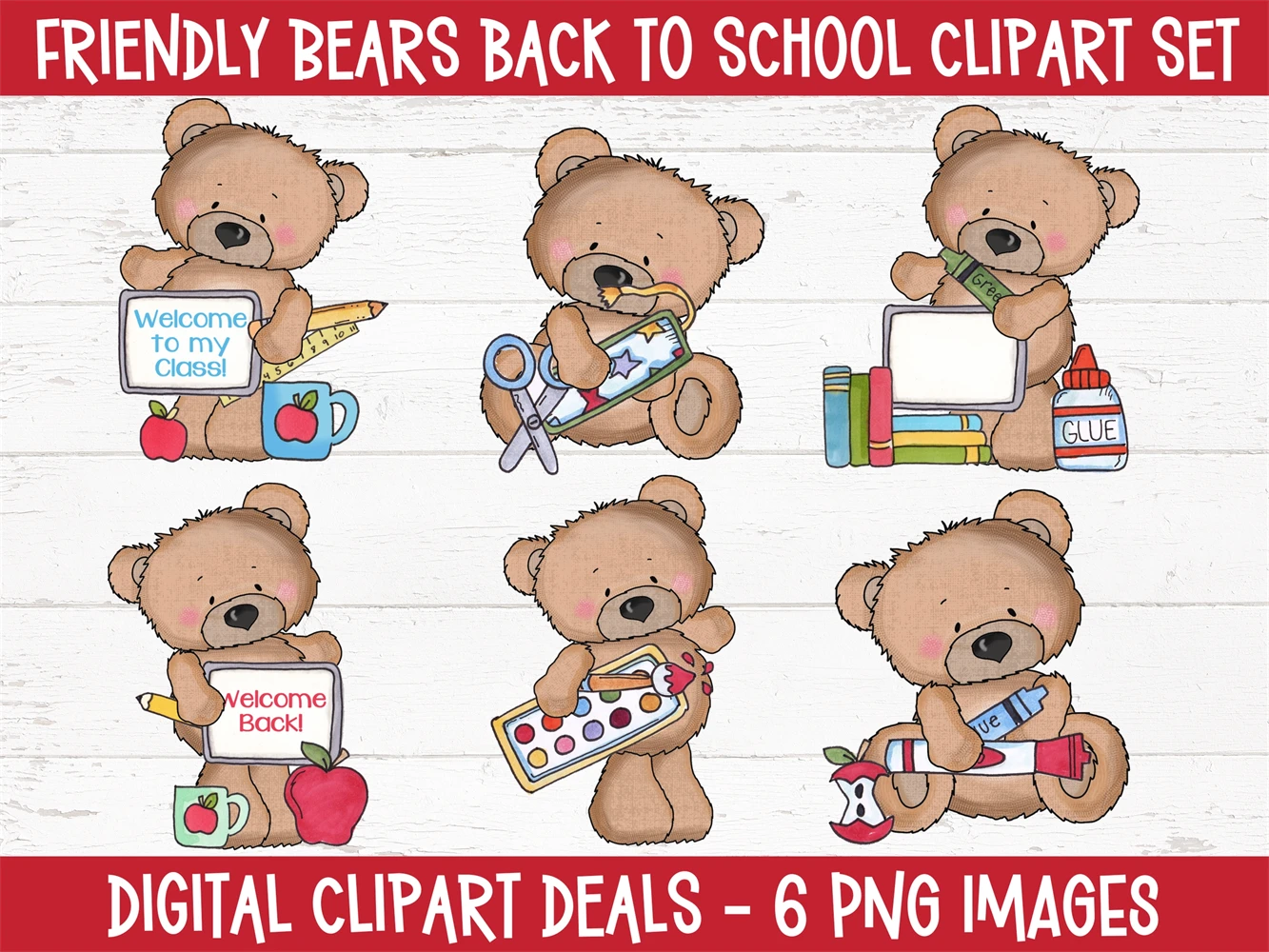 Friendly Bears Back to School Clipart Set