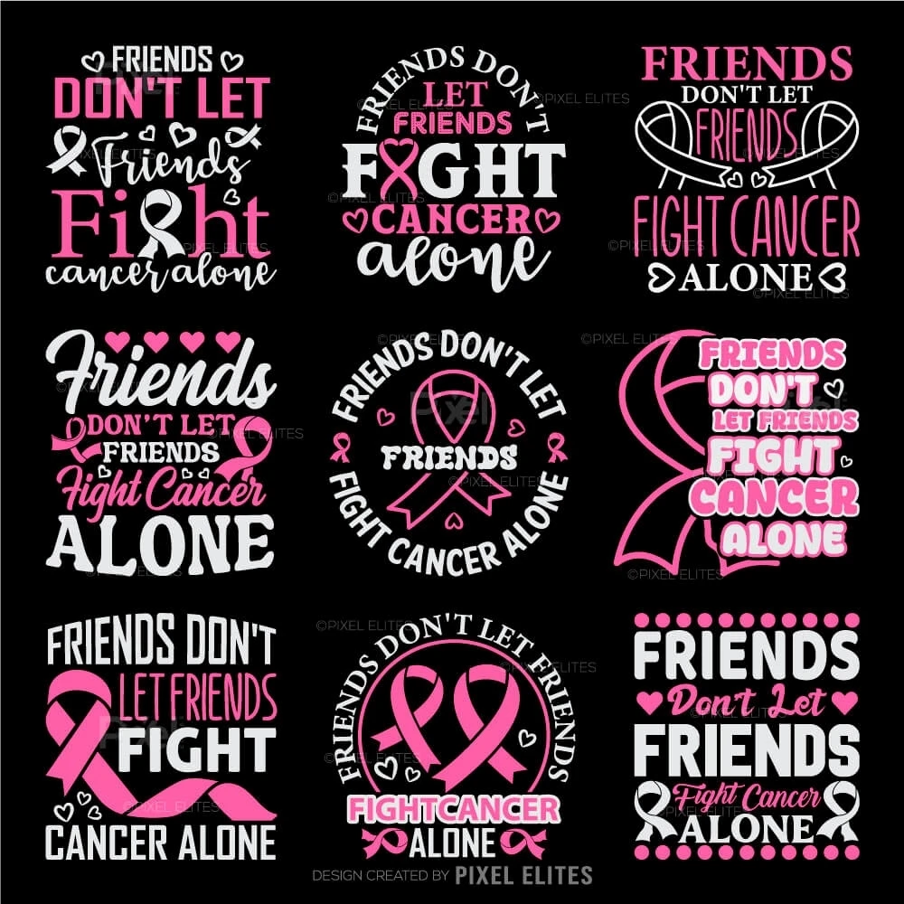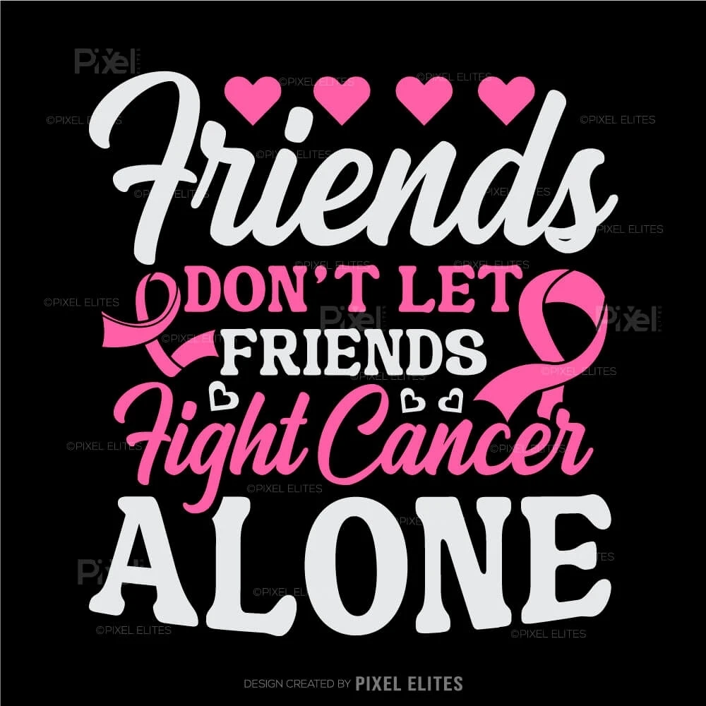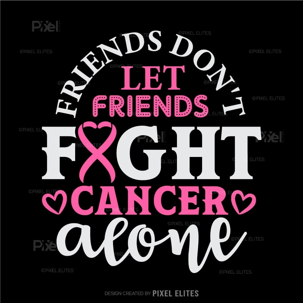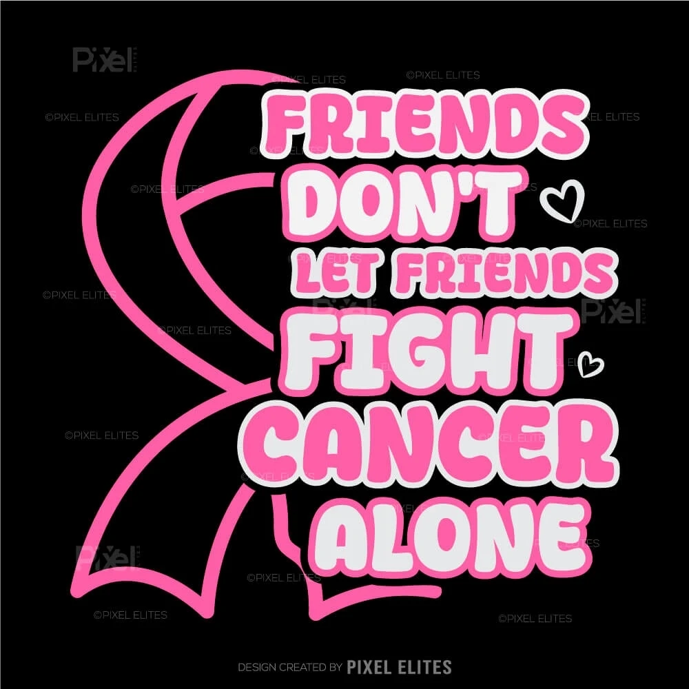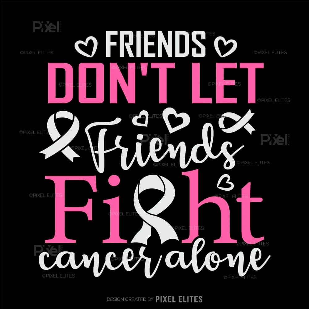 Show your unwavering support and solidarity with the Friends Don't Let Friends Fight Cancer Alone SVG Cut Files. This heartfelt design is perfect for creating custom t-shirts, decals, and gifts that emphasize the power of friendship and unity in the fight against cancer.
