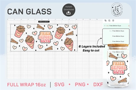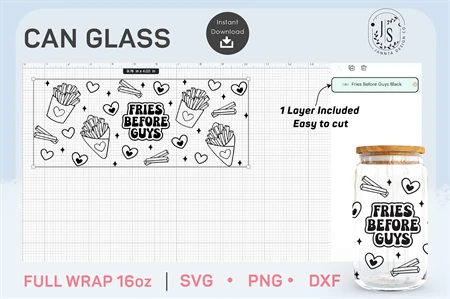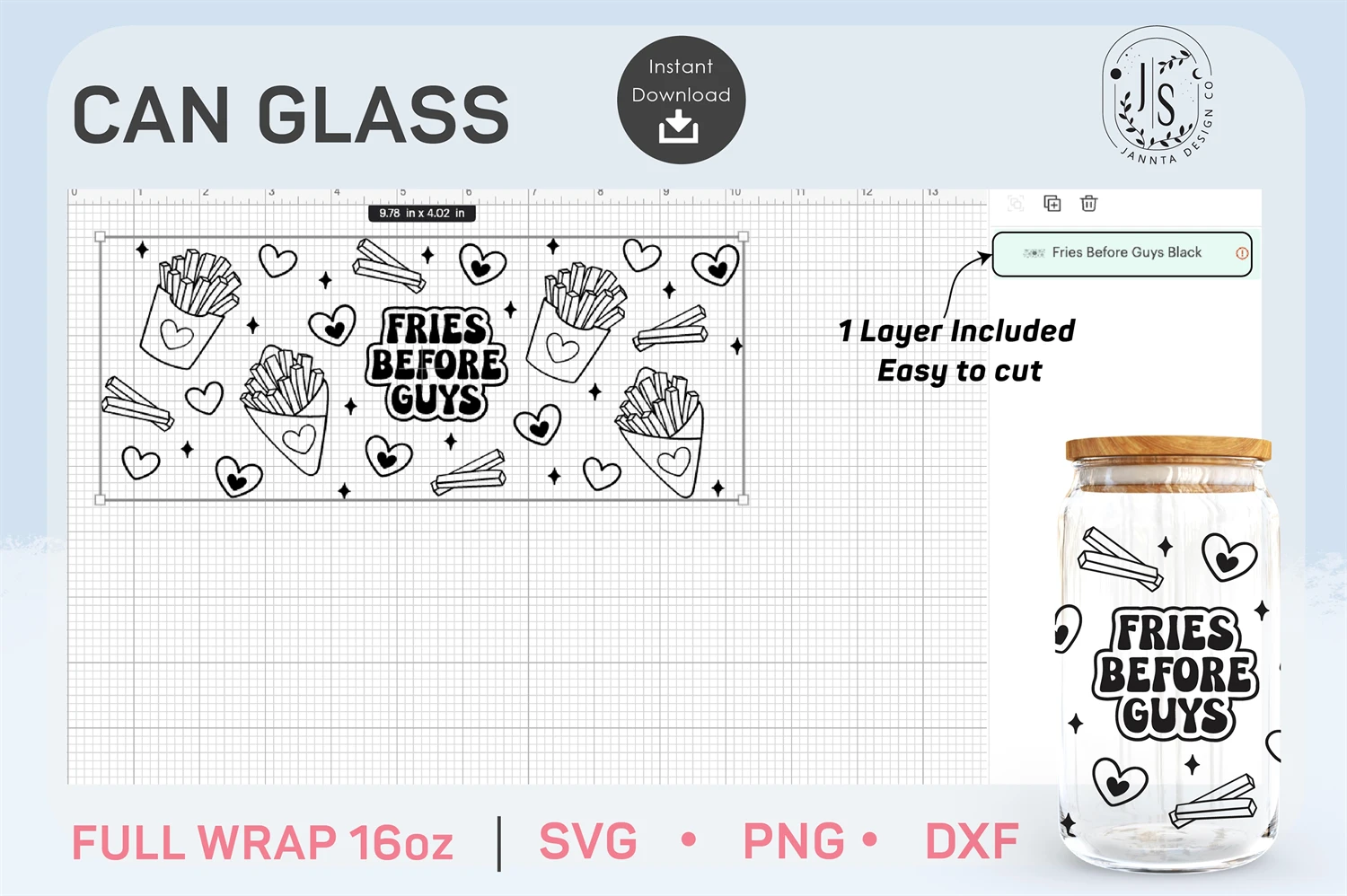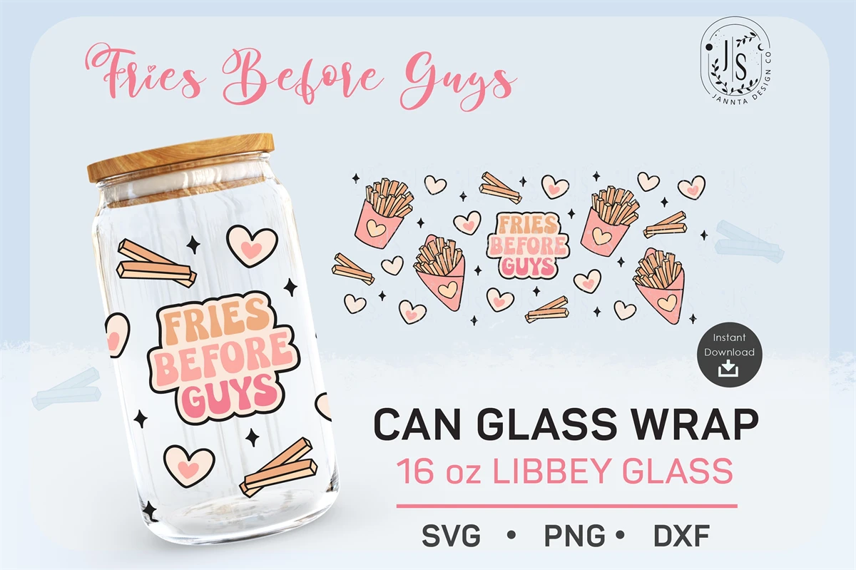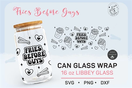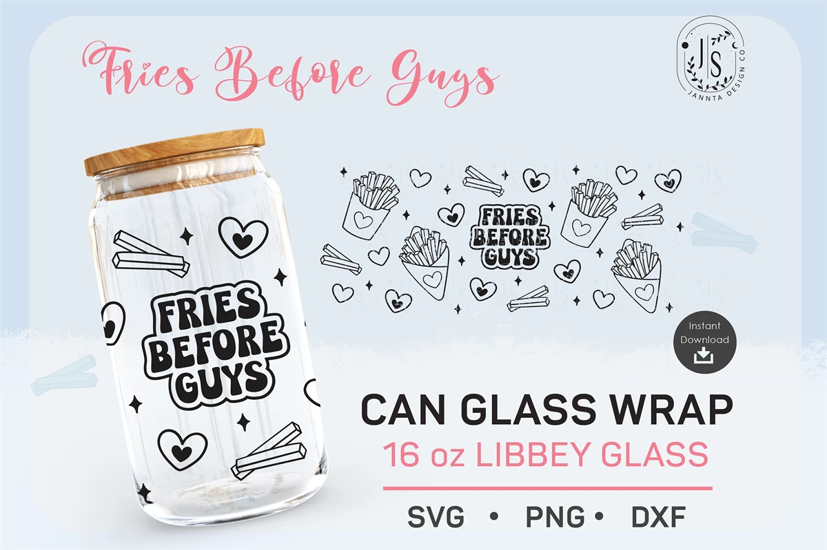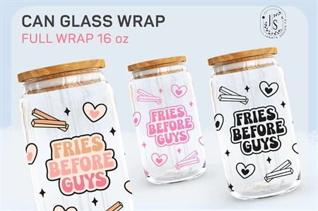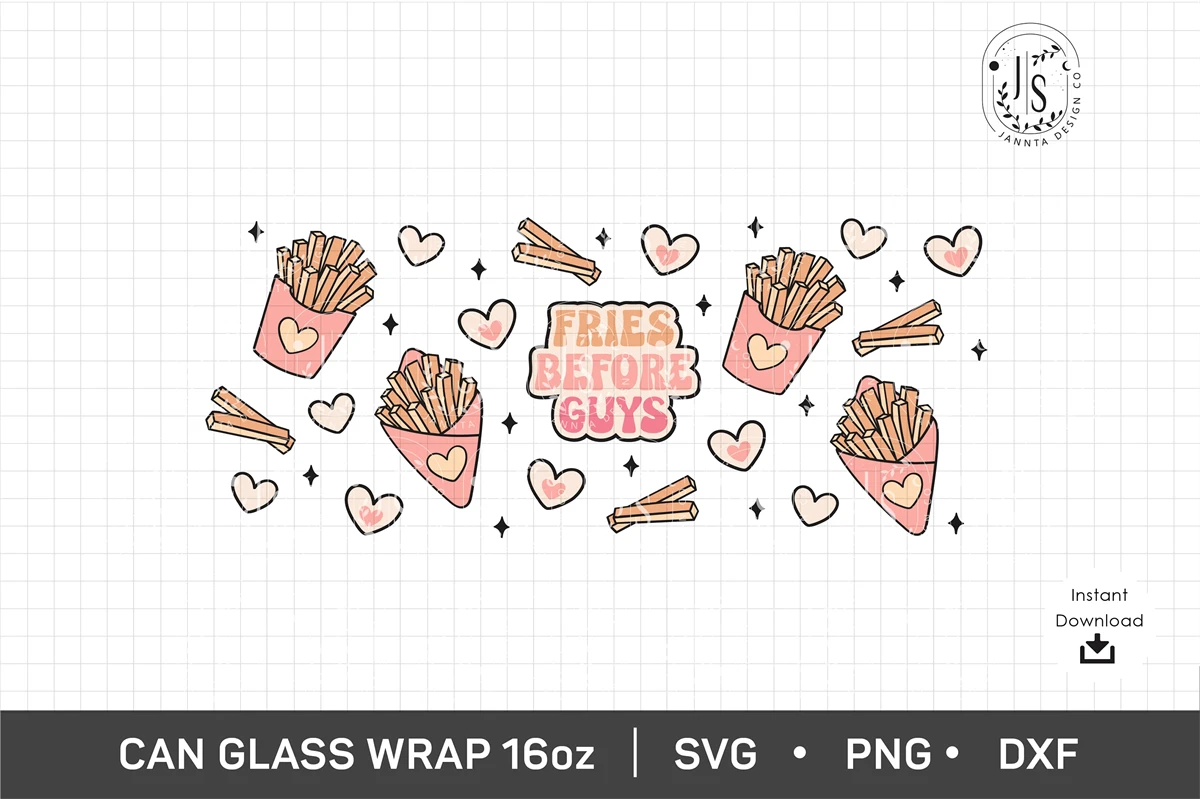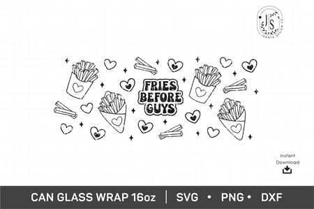 16oz Fries Before Guys SVG, Valentines SVG, Can glass wrap, Iced Coffee Glass, Valentine's day SVG, Libbey beer glass, wrap SVG, SVG files, WRAP TEMPLATE, Full Wrap for Can Glass, Seamless Wraps, PNG Digital Download Template