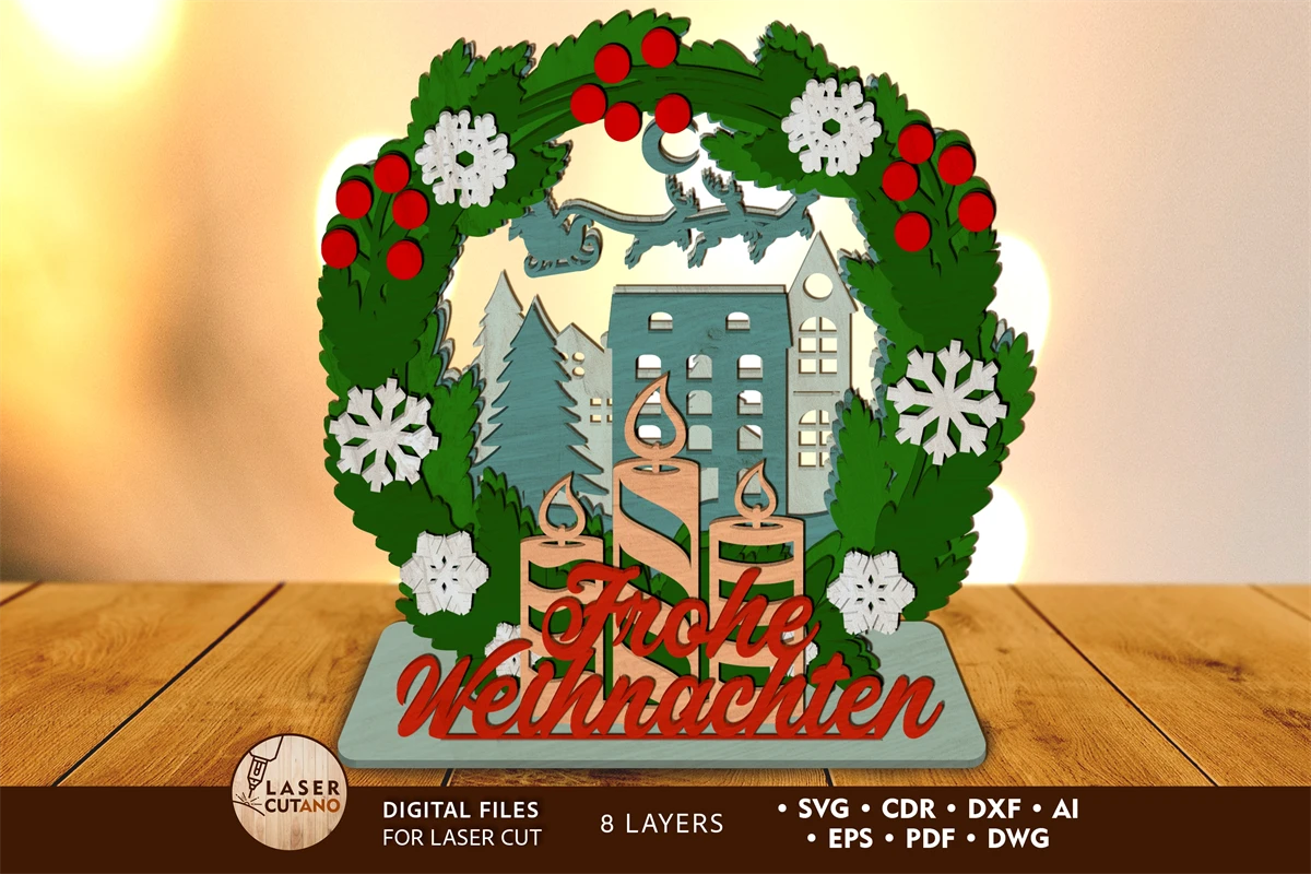 Frohe Weihnachten Digital multilayer layout files are specially prepared for the laser cut, CNC router machine and other cutting machines.