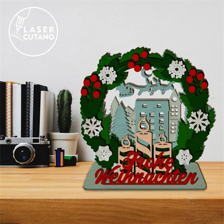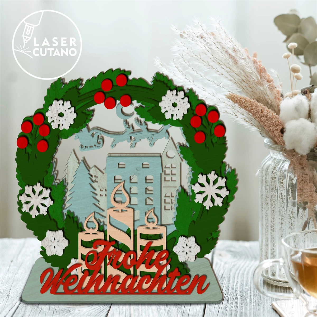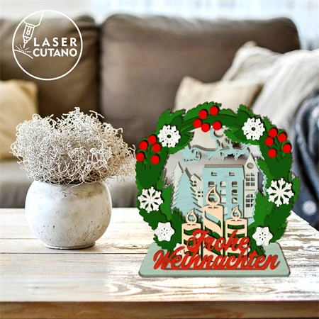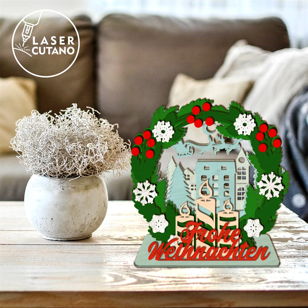 A Frohe Weihnachten table decoration made from plywood is a charming and festive addition to your holiday decor. This German phrase translates to "Merry Christmas," and this wooden centerpiece captures the essence of the holiday season beautifully.