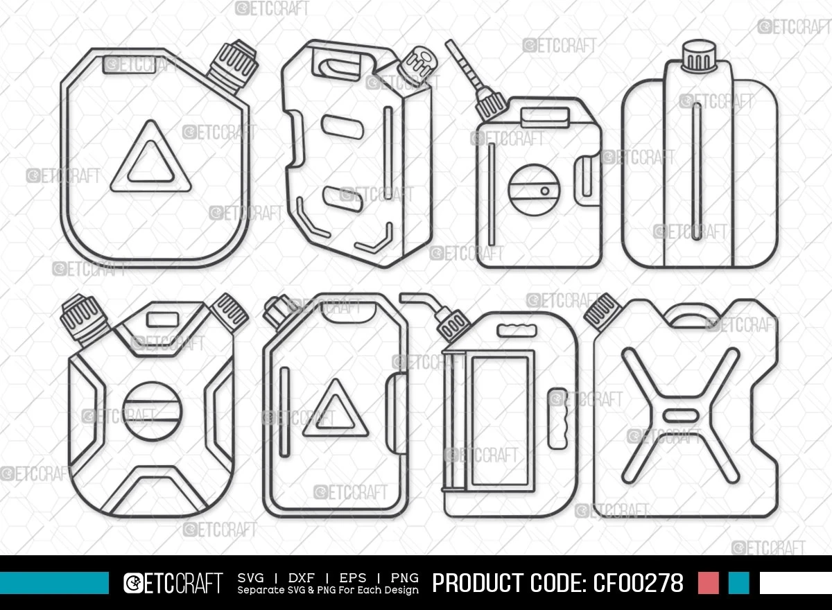 Elevate your fuel and transportation-themed projects with the Fuel Tank Outline Gas Bottle SVG Cut File Bundle. It's perfect for graphic designers, DIY enthusiasts, or anyone who wants to add a clean and industrial touch to their energy-related designs. Start creating your unique and impactful visuals today!