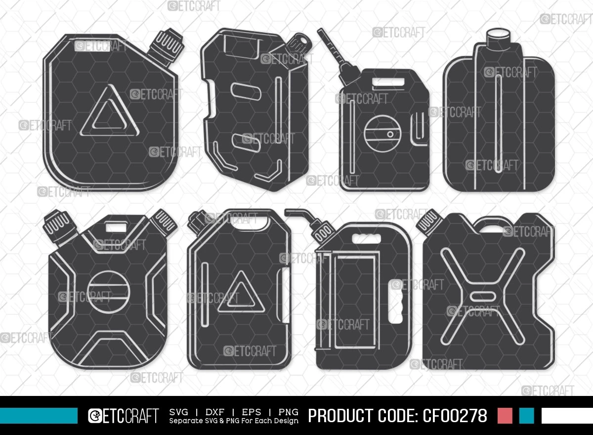 Elevate your fuel and transportation-themed projects with the Fuel Tank Silhouette Gas Bottle SVG Cut File Bundle. It's perfect for graphic designers, DIY enthusiasts, or anyone who wants to add a modern and industrial touch to their energy-related designs. Start creating your unique and impactful visuals today!