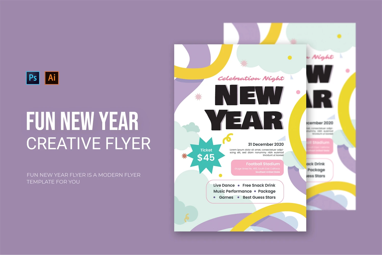 Fun New Year - Flyer. This Flyer template is designed for your company's business needs. very clean and elegant, and also easily edited and adjusted to your liking