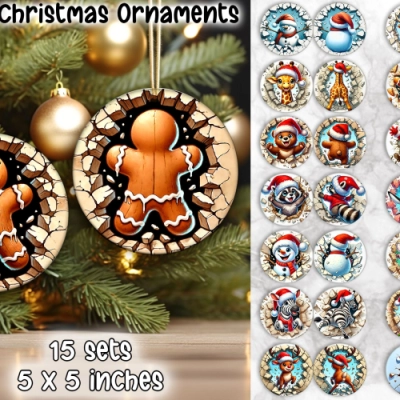 Cute Christmas ornament and round gift tags printable design.