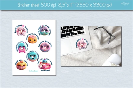 1 PNG Stickers sheet 8,5x11(2550 x 3300 px) 300 dpi (us letter size).