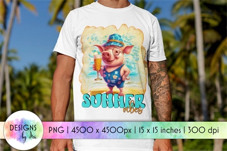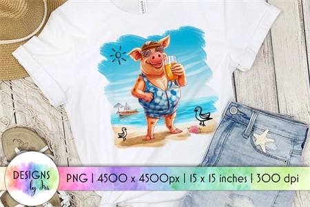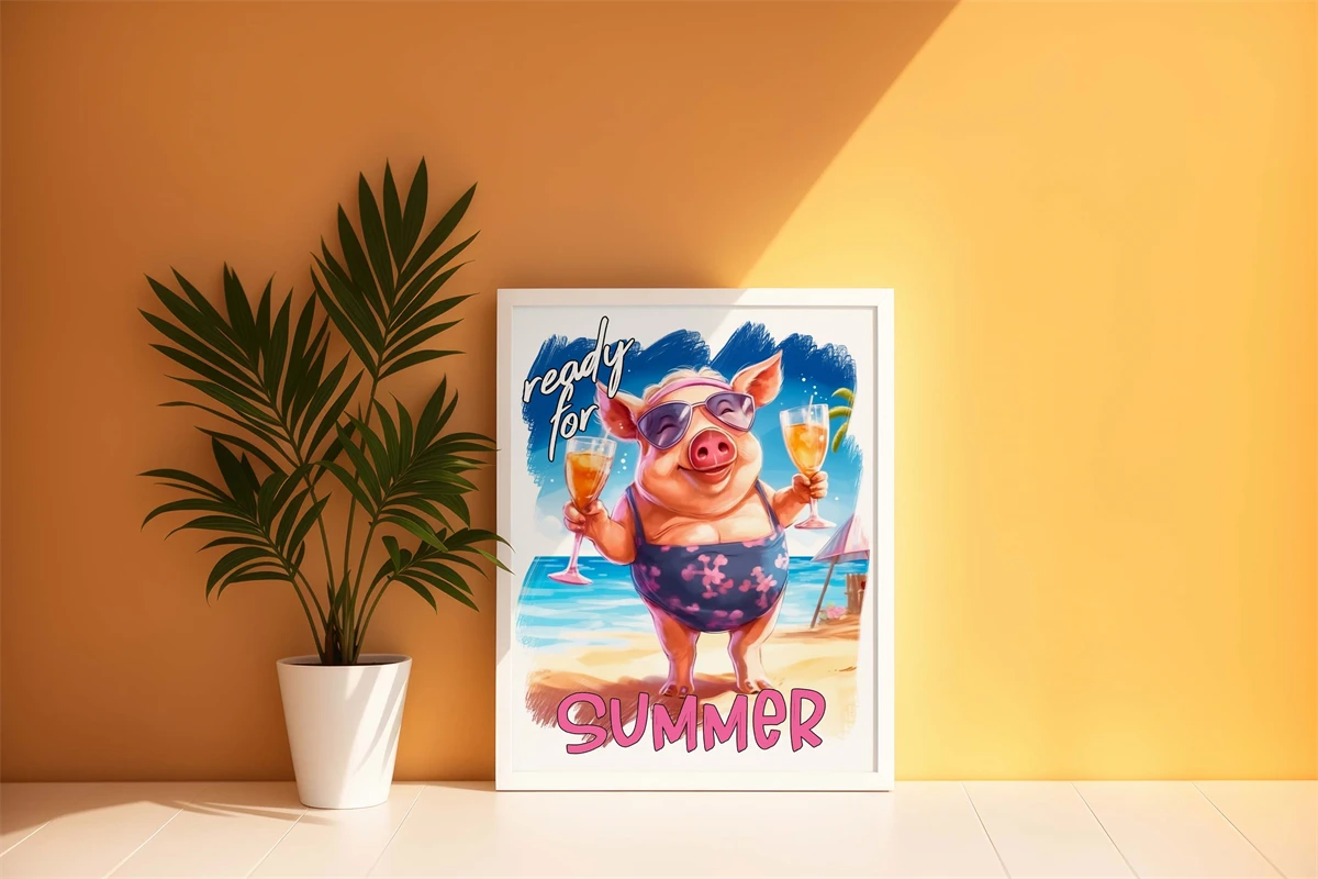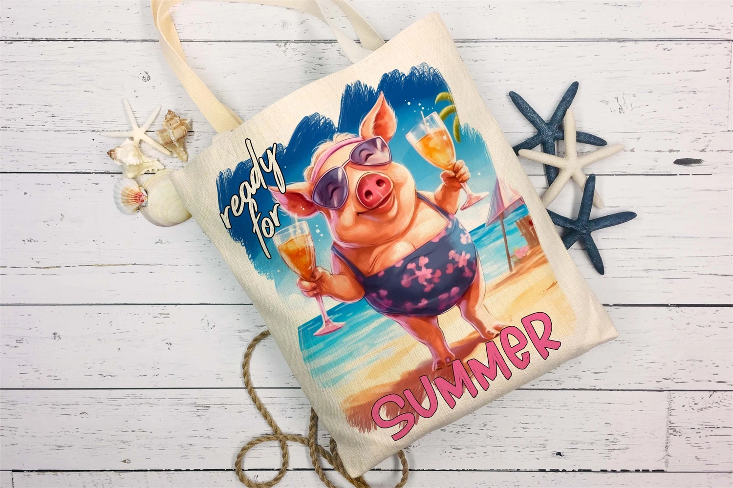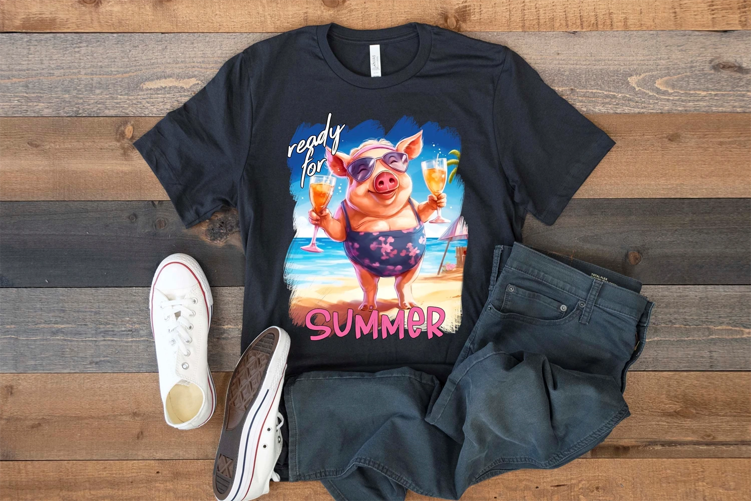 "Ready for summer" - funny summer sublimation with piggy on the beach drinking cocktail.