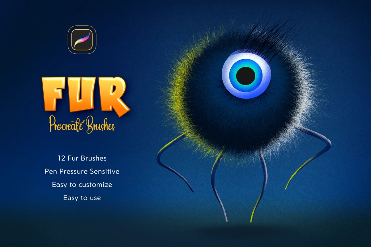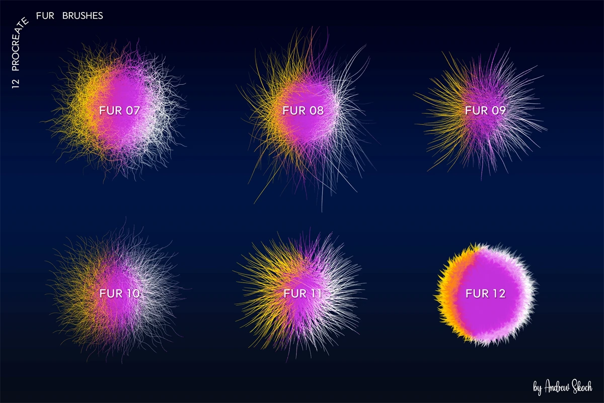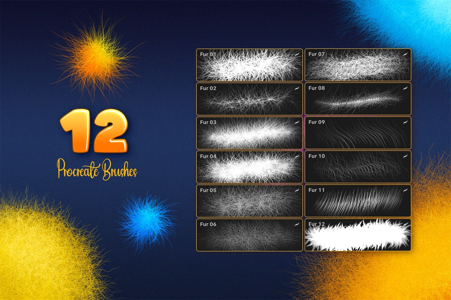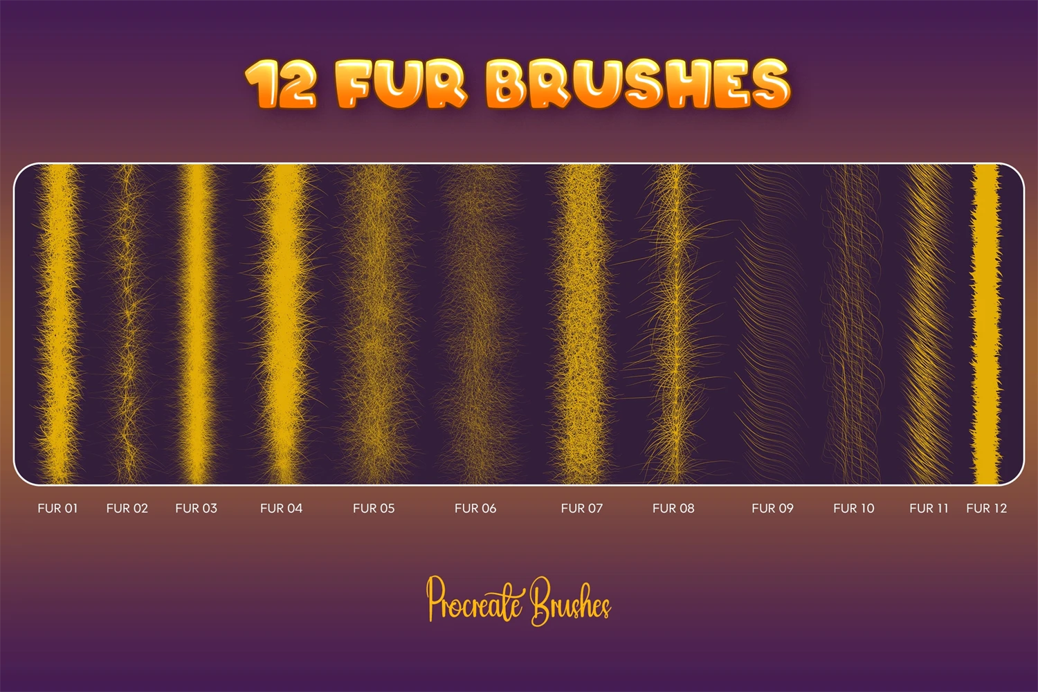 Get 12 brushes for procreate drawing. It is easy to paint a variety of fur - long or short, thick or thin. Brushes are pen pressure sensitive: big pressure - big opacity, small pressure - small opacity.