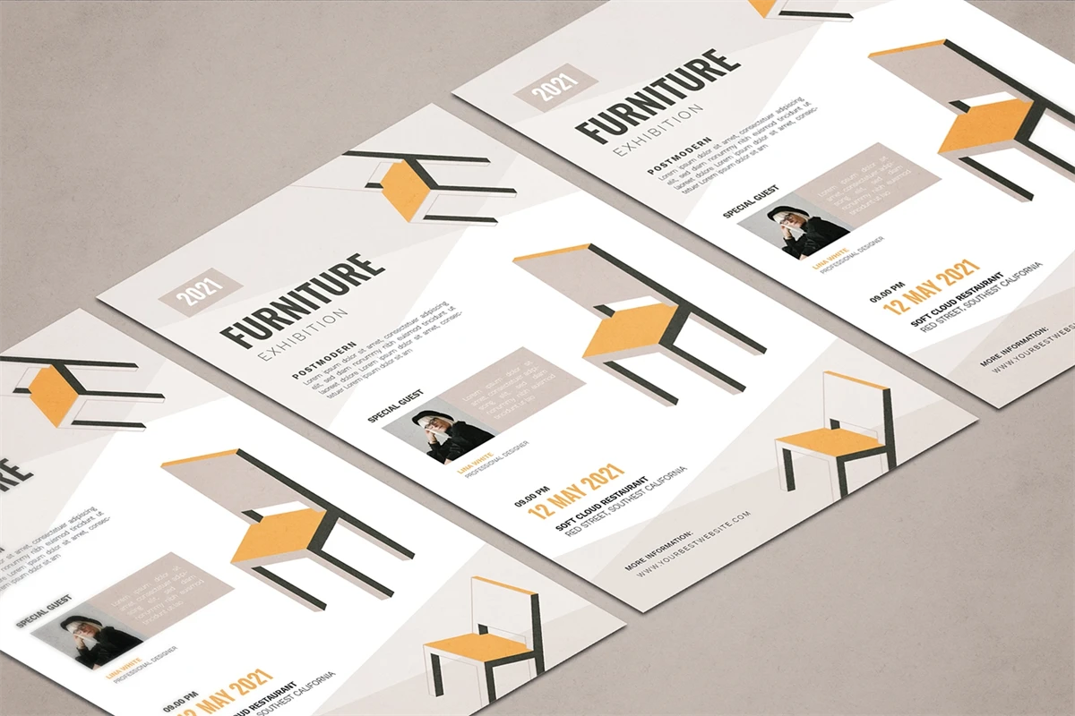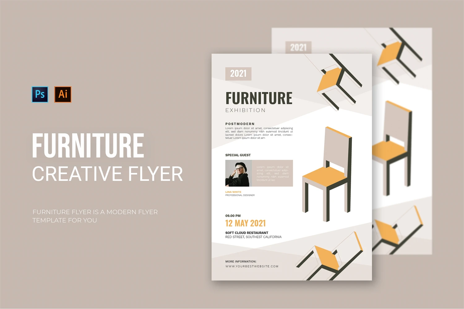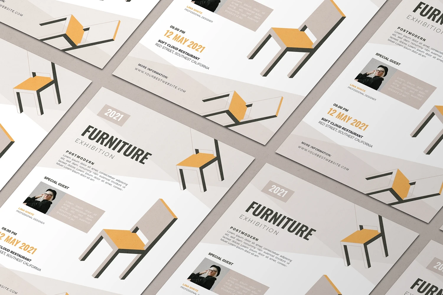 Furniture Exhibition - Flyer. This Flyer template is designed for your company's business needs. very clean and elegant, and also easily edited and adjusted to your liking
