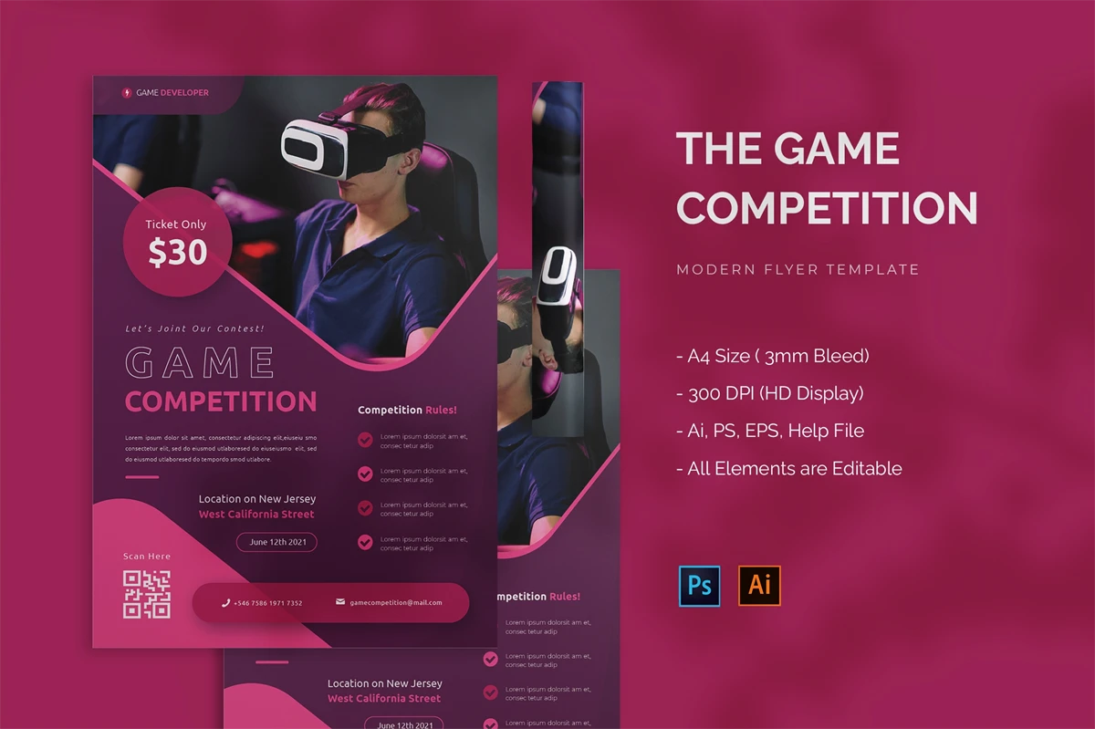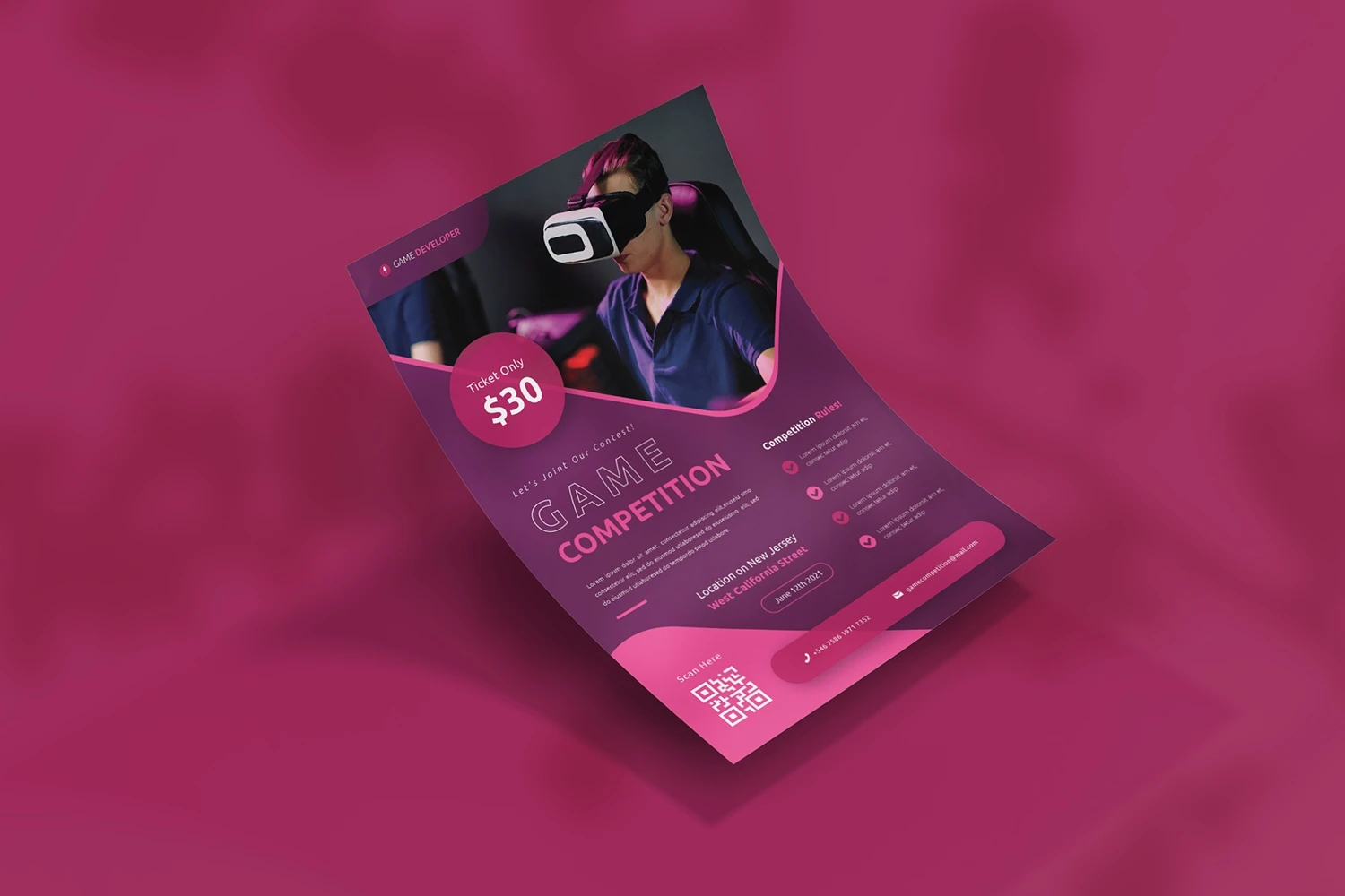 Game Competition - Flyer. This Flyer template is designed for your company's business needs. very clean and elegant, and also easily edited and adjusted to your liking