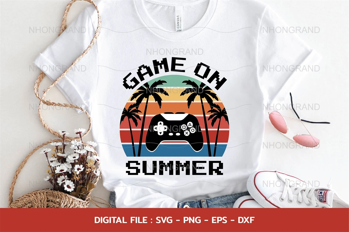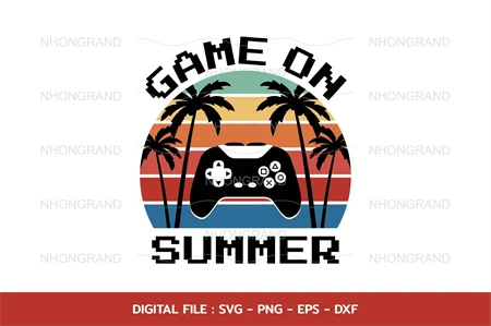 game on summer vacation with palm beach and game sunset retro Svg, t-shirt, Cricut Files, svg, png, eps, dxf, Instant Download