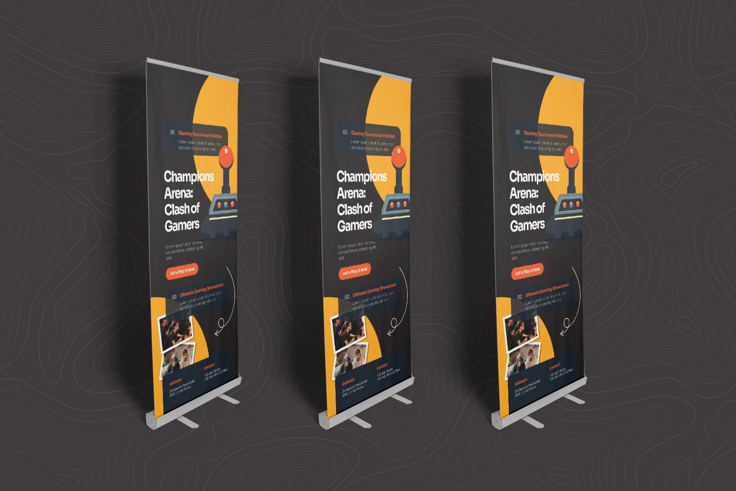 The versatile roll up banner template is very easy to use, modify and customize. Use this roll up banner and make the most of your campaign!
