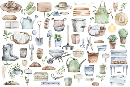 This is a quality set of watercolor individual elements. High quality illustrations of horticultural and vegetable gardens. Made in watercolor technique. Perfect design for crafts, greeting cards, apparel, blogs, posters, decor, sublimation and more.