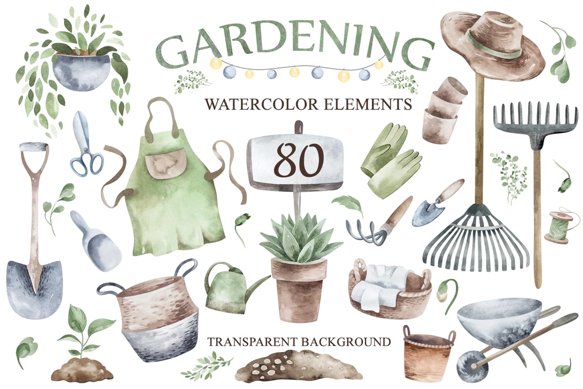 - 80 ready-made individual watercolor elements (PNG, transparent background, 600 dpi)