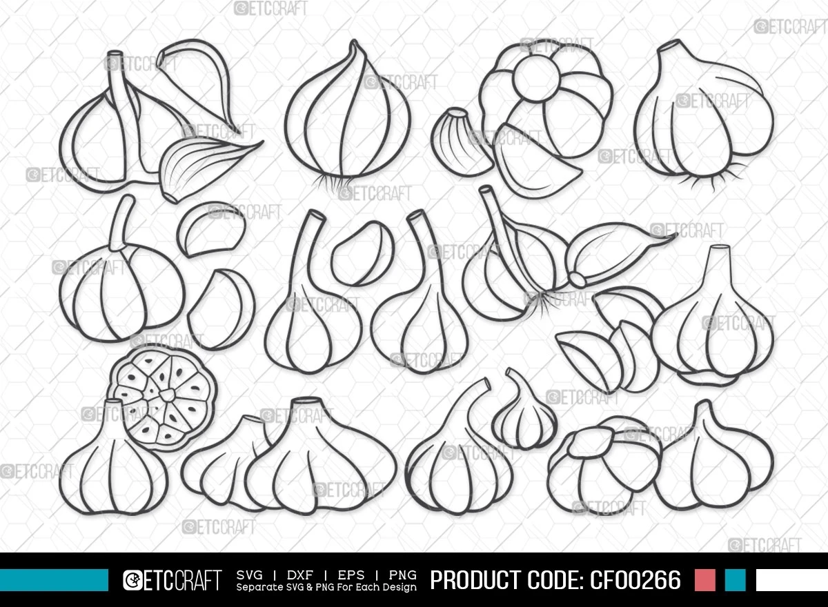 From revamping your recipe collection to designing unique kitchen accessories, our Garlic Outline Cool Garlic Bulb Clove SVG Cut File Bundle is your go-to resource for adding culinary charm to your creative projects.