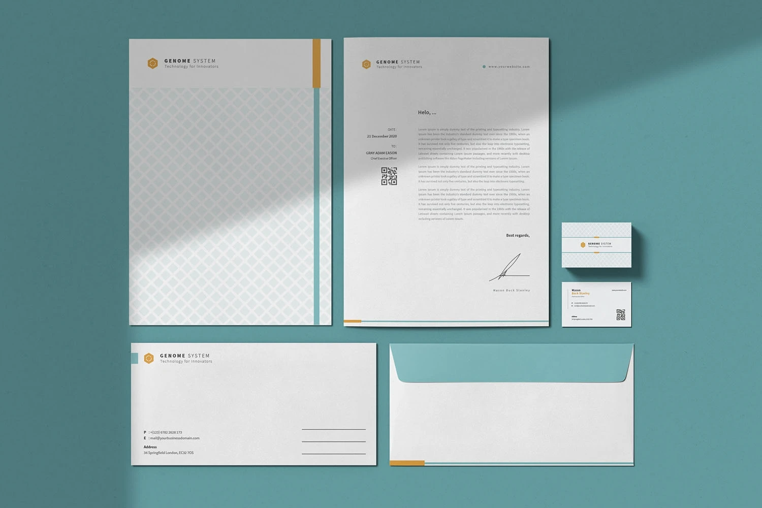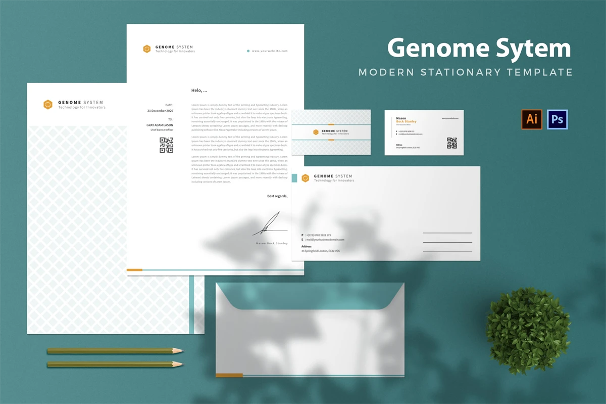 Genome System - Stationary. This template is great for your business and this design will make your interested, elegant, and easily editable according to your needs. I hope you enjoy for this stationary.
