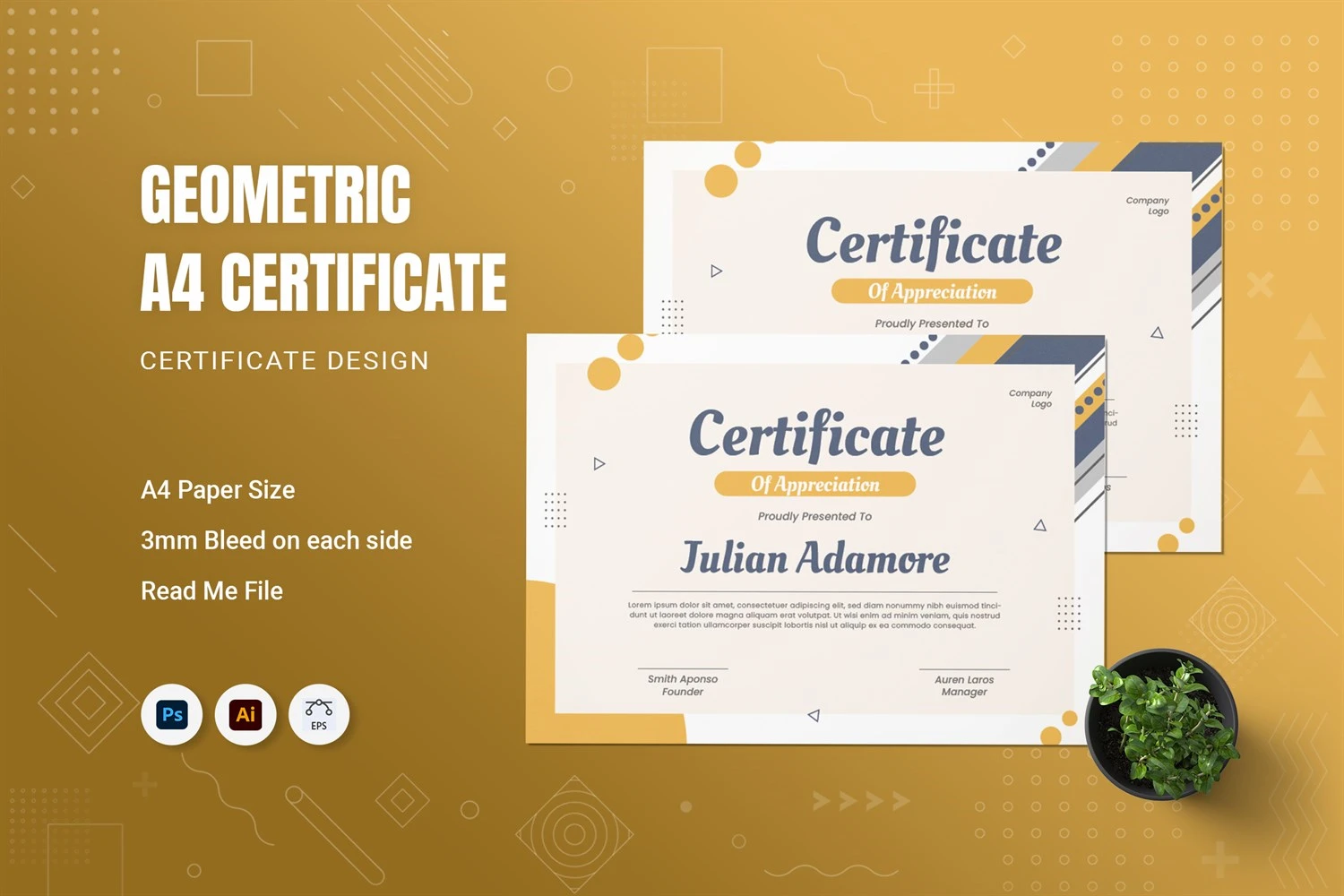 This certificate template can be used for a variety of different purposes in the realms of business, education, fashion, photography, food, lifestyle, architecture, and so on. You dont need to create them from scratch; it's time-consuming. It is completely customizable to suit your brand's colors and corporate fonts.