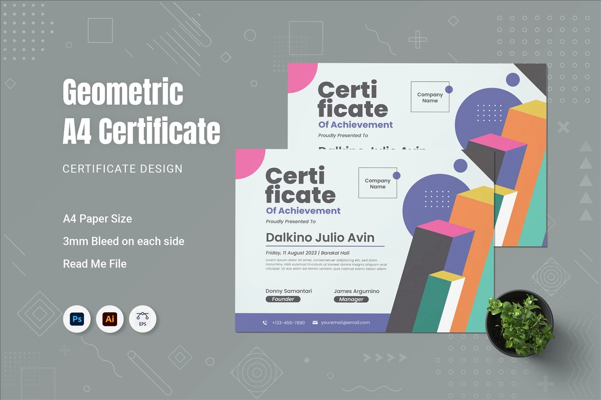 This certificate template can be used for a variety of different purposes in the realms of business, education, fashion, photography, food, lifestyle, architecture, and so on. You dont need to create them from scratch; it's time-consuming. It is completely customizable to suit your brand's colors and corporate fonts.