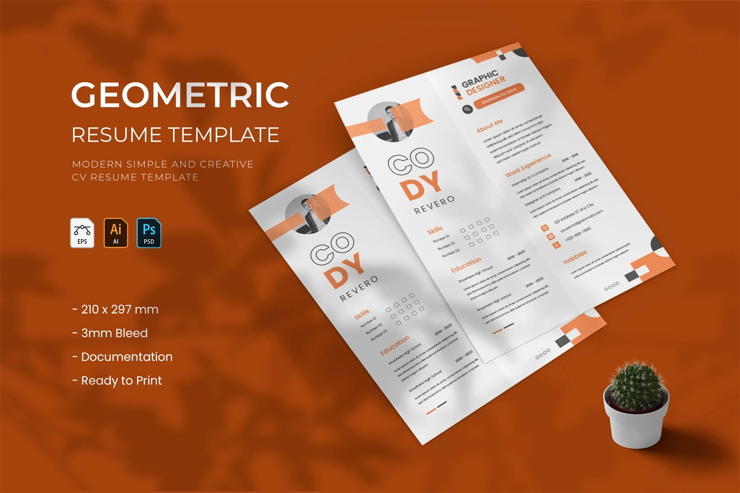 creative resume and cover letter template that will make your resume stand out from the hundreds of resumes employers get. It gives you the information you need, such as your name, contact information, social media links, education, experience, skills and interests. Also, it comes with three different color schemes.