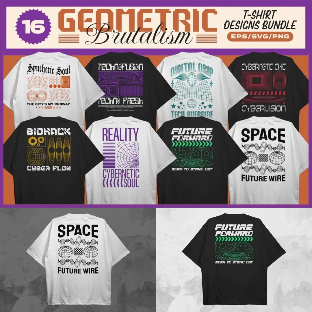 Geometric Streetwear Brutalism T-shirt Designs Bundle