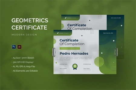 Geometrics - Certificate Template This Certificate Template may be used to recognize the successful completion of a program, degree, or position in your organization. This multipurpose certificate template may also serve as a certificate of excellence, appreciation, achievement, appreciation, or for any similar purpose.