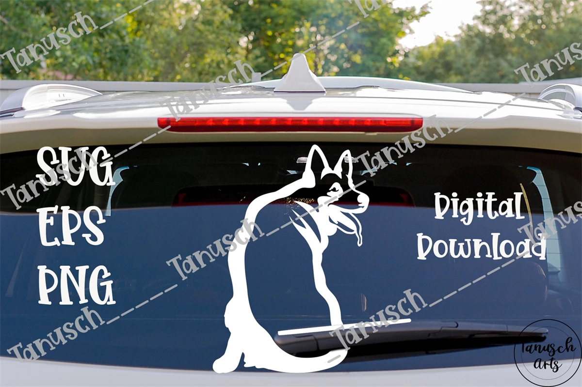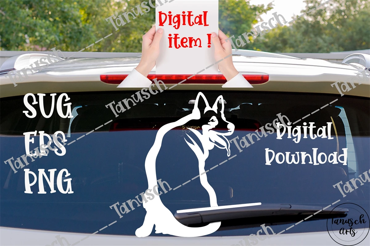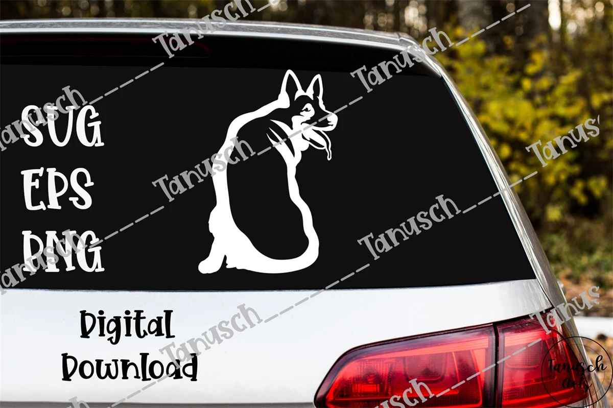 German Shepherd Dog Car Window Decal Wagging Tail Dog Graphic Graphic absolutely cool digital dog sticker for your car.