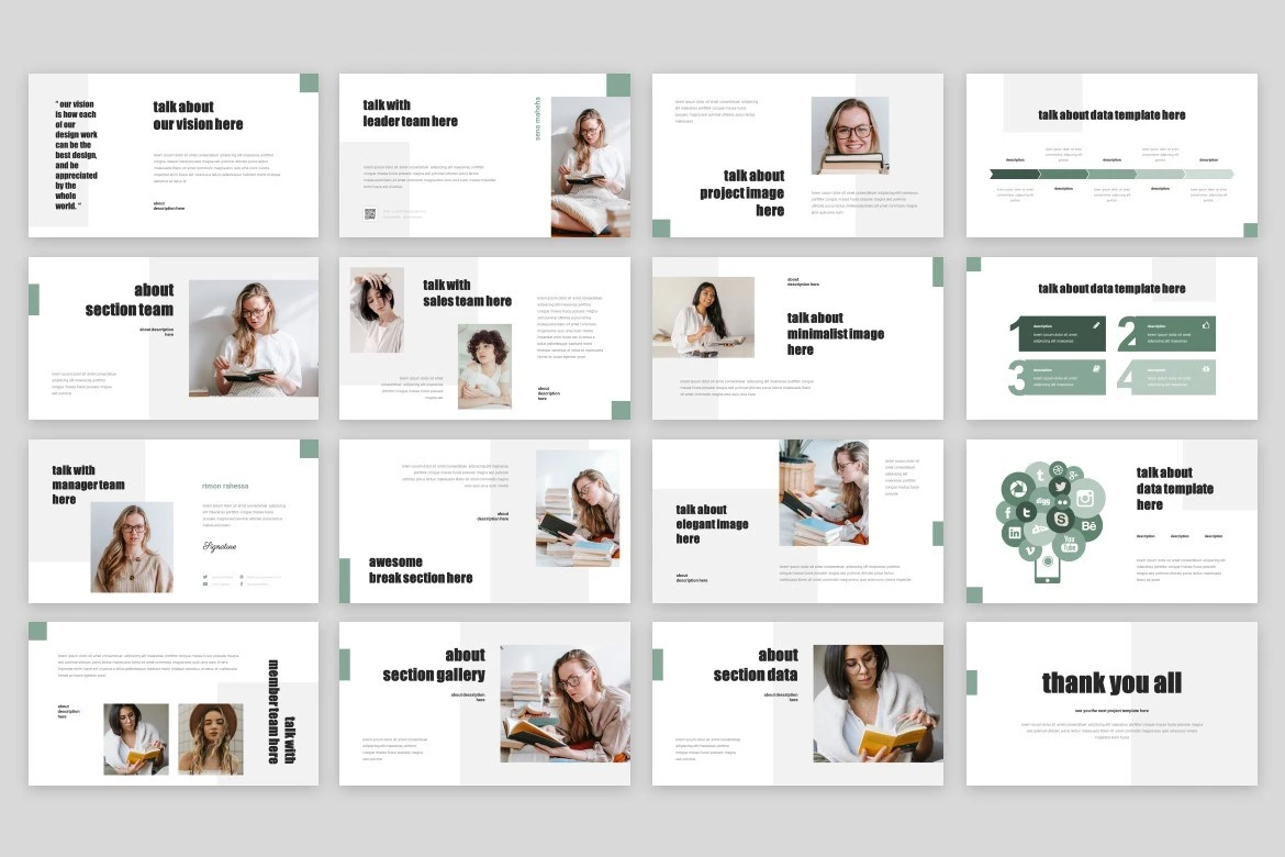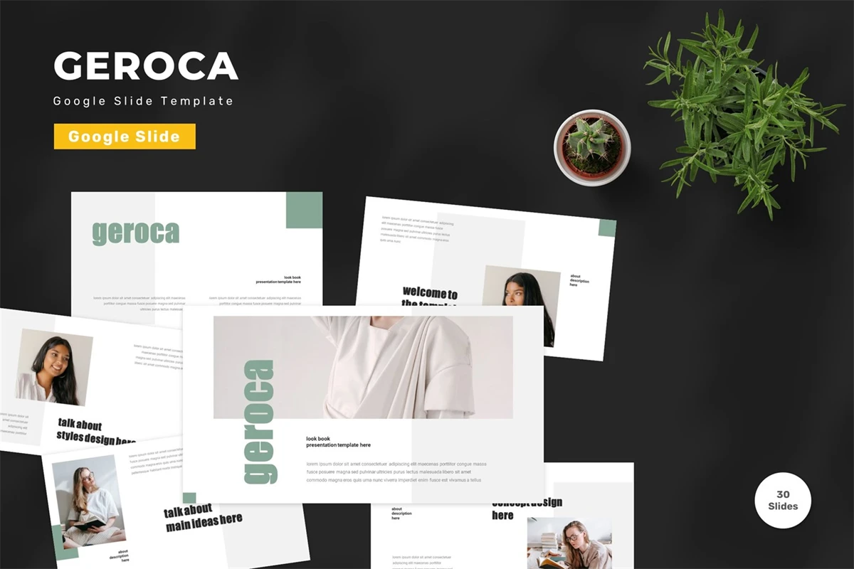 Get it now! **Geroca - Google Slide Template** for All Business and Personal Needs All elements on this template are editable; input your content, replace your image with a placeholder, change the color, and all presentations include an animated slide to present your slides.